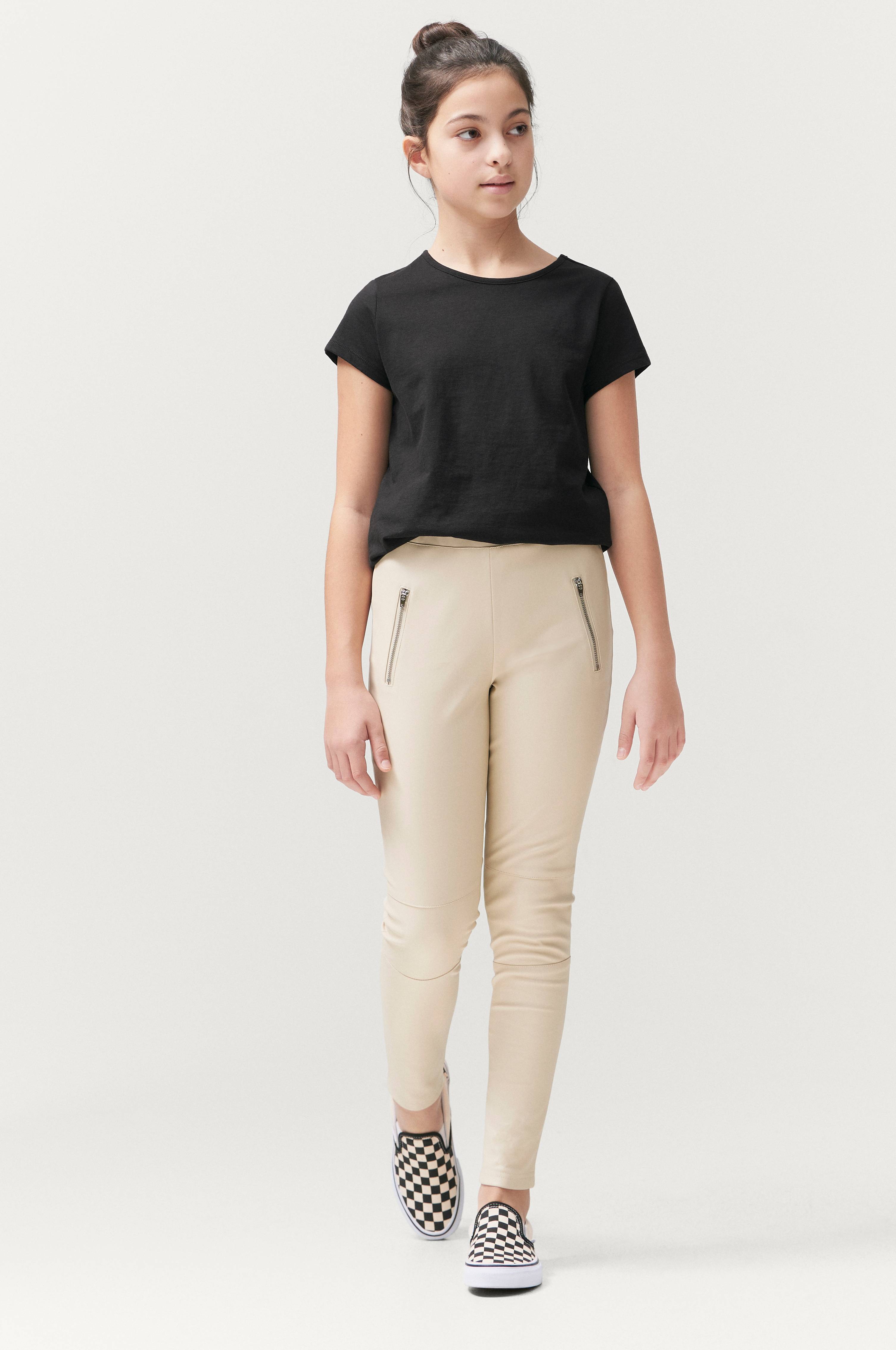 Leggings Lova i skindlook med elastiklinning og to pyntelynlåse foran.