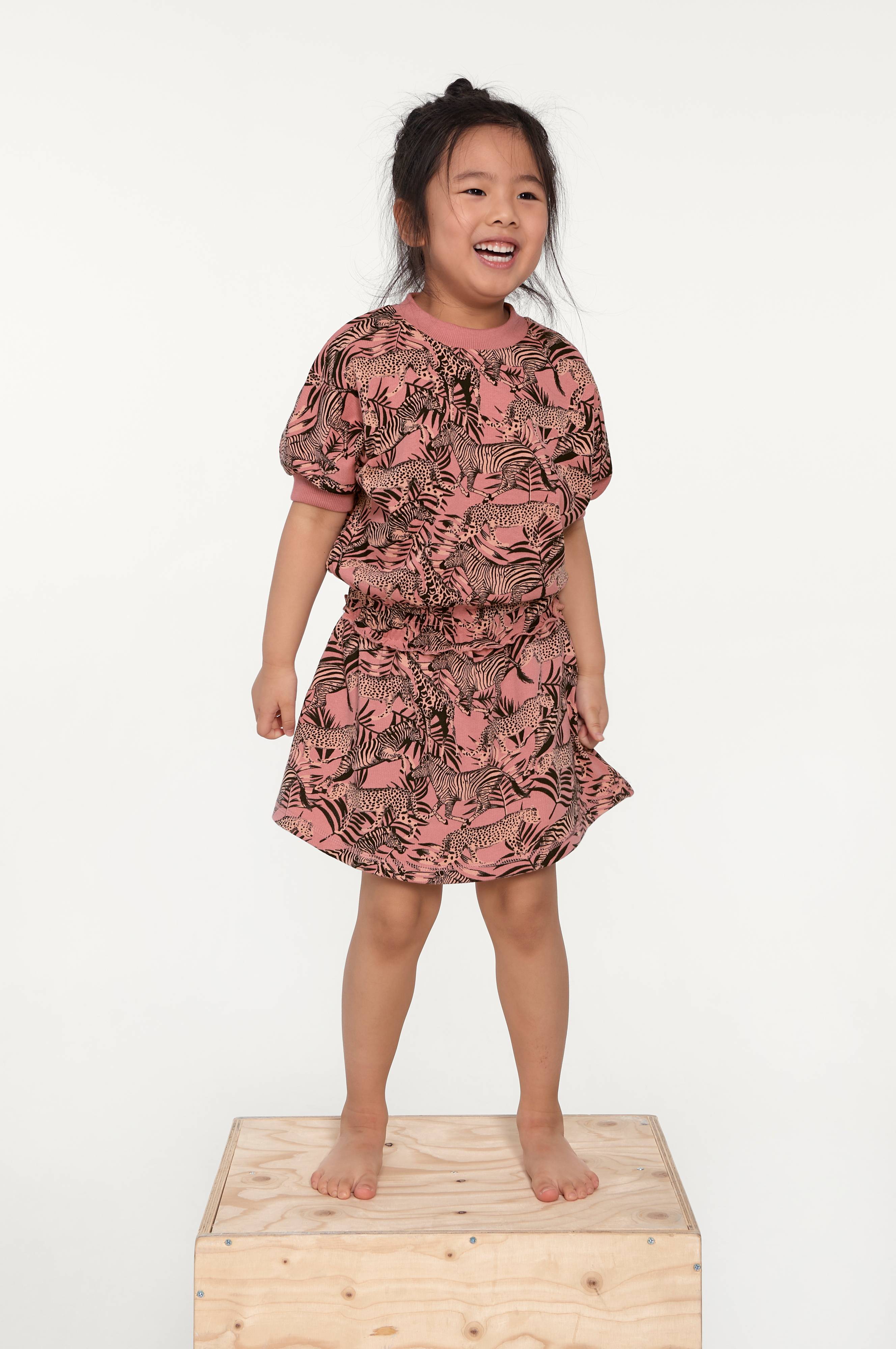 Sweatnederdel i mønstret bomuld med ensfarvet rib i taljen.