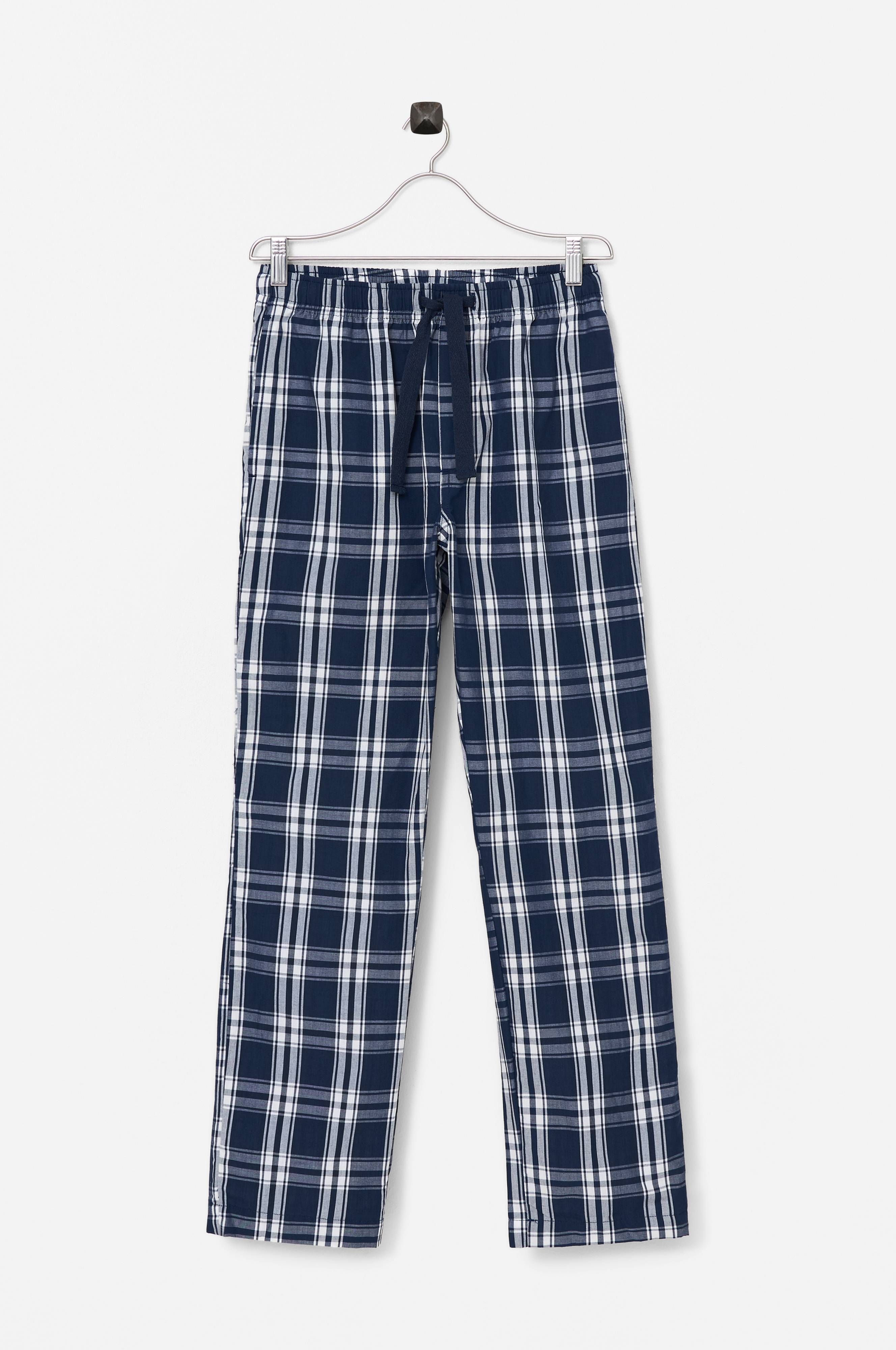 Ternede pyjamasbukser i vævet bomuldskvalitet. Elastisk linning med løbegang. To lommer.