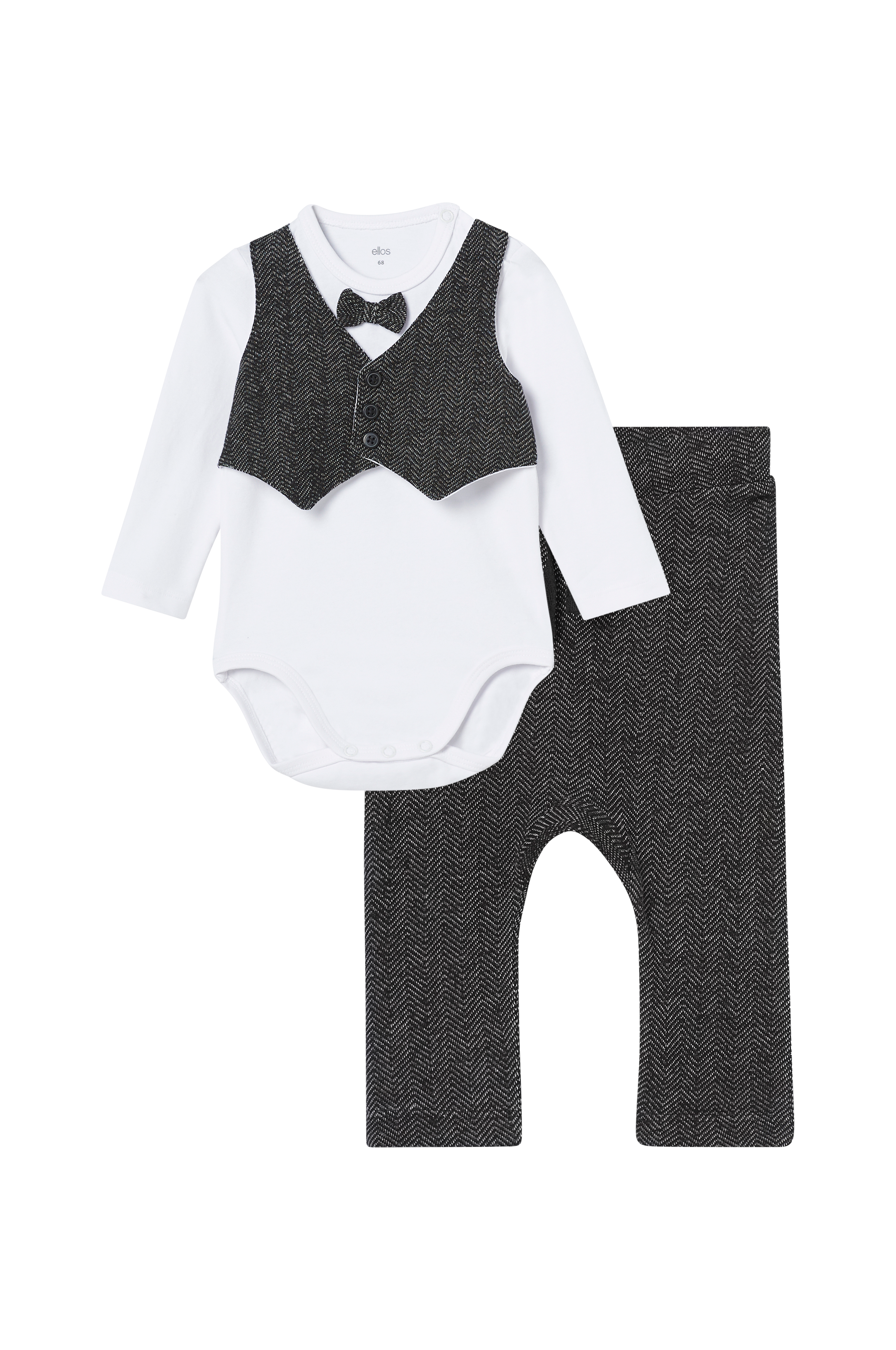 • 2-delt sæt med body og bukser i blød bomuldsjersey • Body med påsyet vest og butterfly • Trykknapper på en skulder og ved skridtet • Bukser med sildebensmønster • Elastisk talje med træksnørre • Ellos samarbejder med Better Cotton for at forbedre bomuldsdyrkningen globalt. Better Cotton er en global nonprofitorganisation, der underviser bomuldsdyrkere i metoder til mere bæredygtig bomuldsdyrkning og arbejder for mere effektiv brug af vand og reduceret brug af pesticider. Better Cotton bringer forbedrede sociale, økonomiske og miljømæssige forhold for bomuldsbønder. Ved at vælge vores bomuldsprodukter støtter du vores investering i Better Cottons mission. Better Cotton er fremskaffet via et system med massebalance og kan ikke fysisk spores til slutprodukter. Besøg bettercotton.org/learnmore for mere information om Better Cotton.