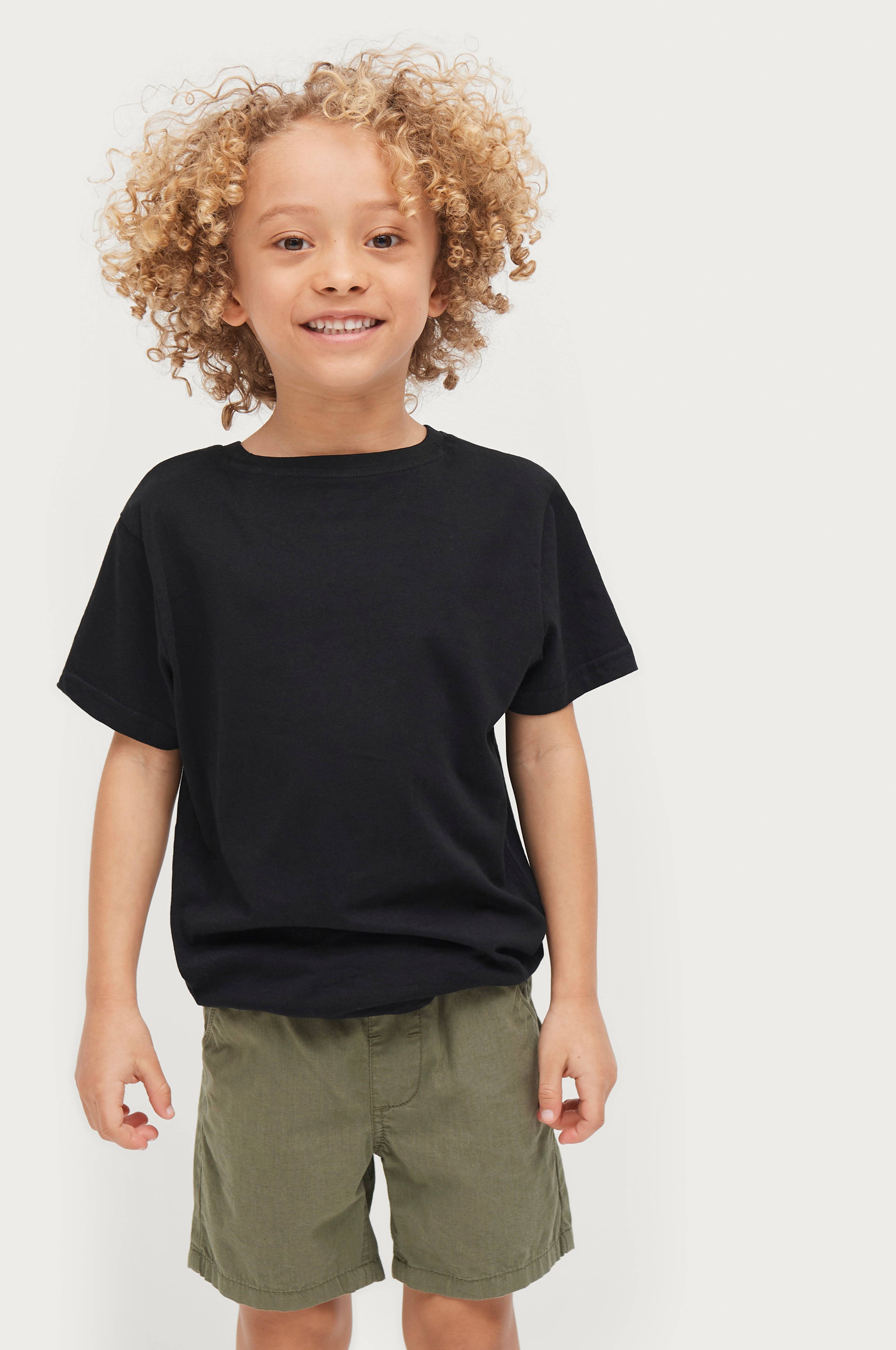 Shorts i vævet, blødvasket kvalitet af bomuld. Elastisk linning med løbegang. To lommer for og to lommer bag.