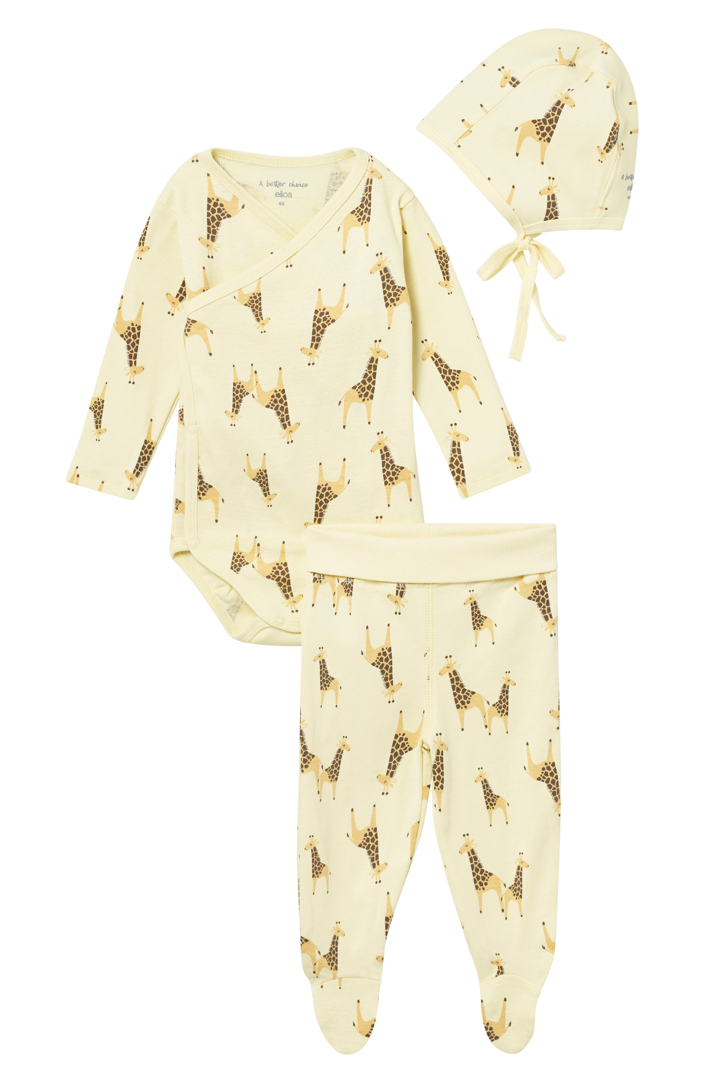 Startpakke eller gavesæt i 3 dele til barnets første tid. Bukser, body og hue i jersey af økologisk bomuld.