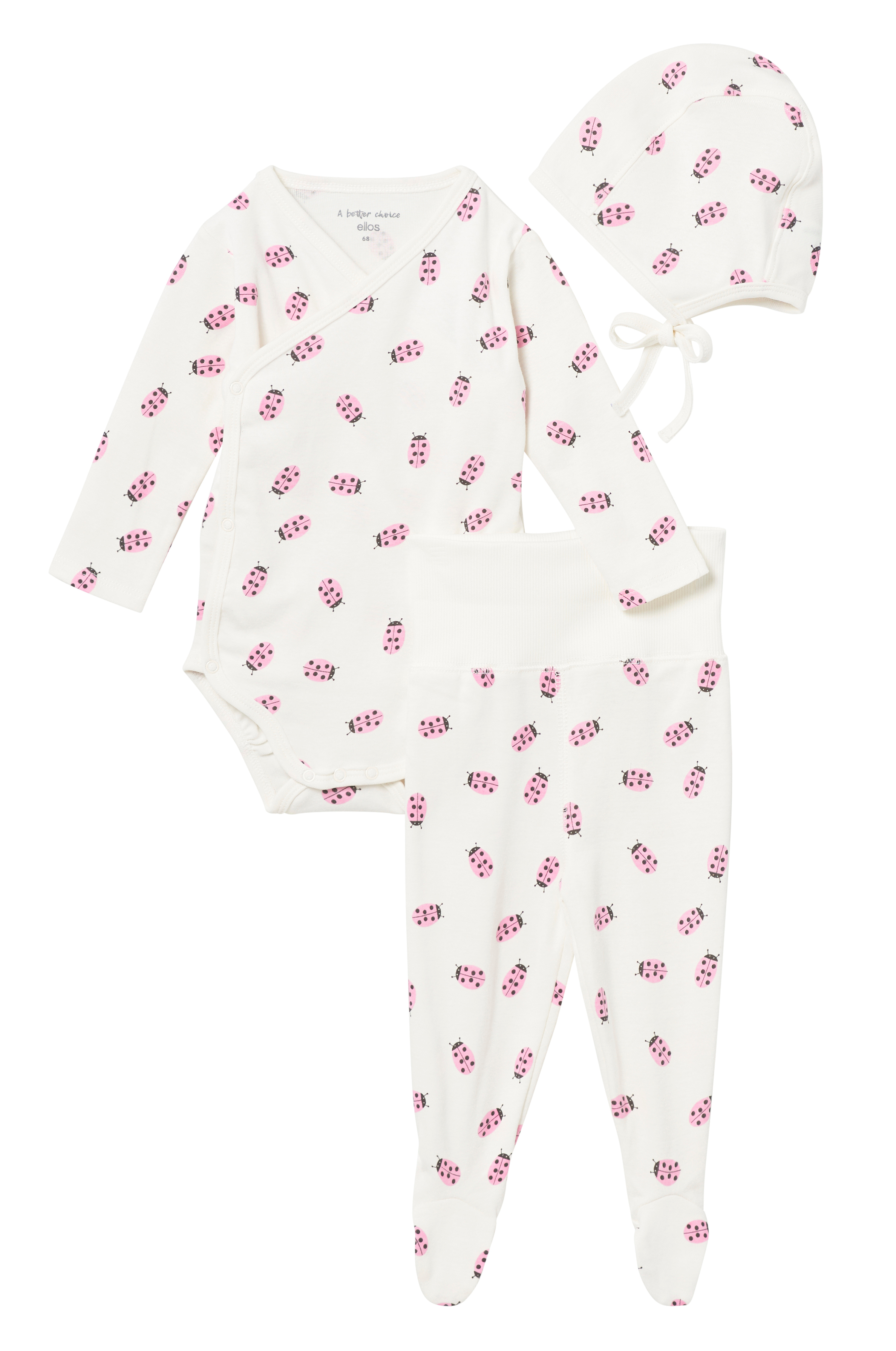 Startpakke eller gavesæt i 3 dele til barnets første tid. Bukser, body og hue i jersey af økologisk bomuld.