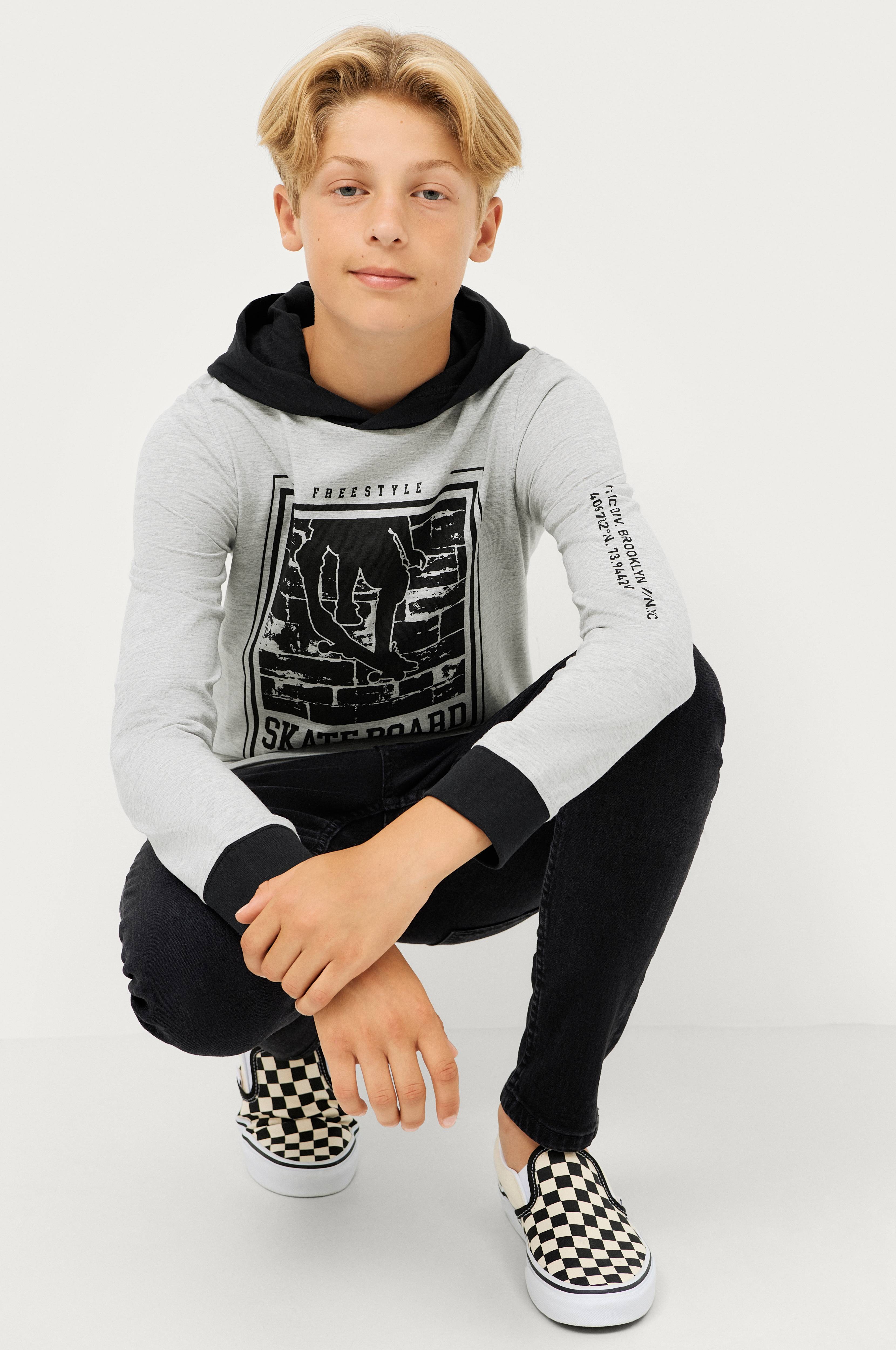 • Langt ærme • Hætte • Tryk foran og på det ene ærme • Ribmanchetter ved manchetterne og nederst • Ellos samarbejder med Better Cotton for at forbedre bomuldsdyrkningen globalt. Better Cotton er en global nonprofitorganisation, der underviser bomuldsdyrkere i metoder til mere bæredygtig bomuldsdyrkning og arbejder for mere effektiv brug af vand og reduceret brug af pesticider. Better Cotton bringer forbedrede sociale, økonomiske og miljømæssige forhold for bomuldsbønder. Ved at vælge vores bomuldsprodukter støtter du vores investering i Better Cottons mission. Better Cotton er fremskaffet via et system med massebalance og kan ikke fysisk spores til slutprodukter. Besøg bettercotton.org/learnmore for mere information om Better Cotton.