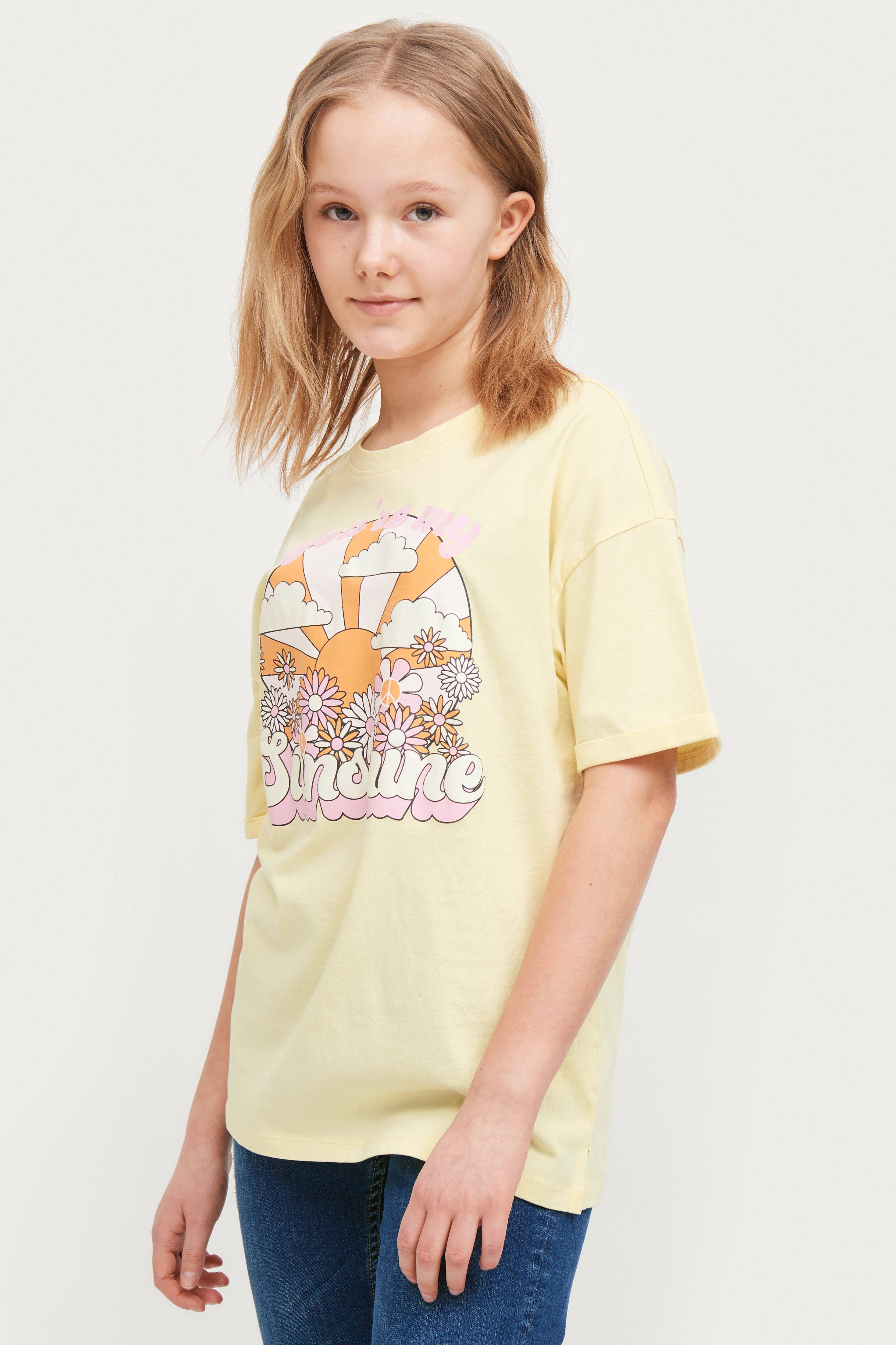 • Oversize pasform • Glitrende tryk foran • Korte ærmer med oprullet • Ventilation nede i siderne • Ellos samarbejder med Better Cotton for at forbedre bomuldsdyrkningen globalt. Better Cotton er en global nonprofitorganisation, der underviser bomuldsdyrkere i metoder til mere bæredygtig bomuldsdyrkning og arbejder for mere effektiv brug af vand og reduceret brug af pesticider. Better Cotton bringer forbedrede sociale, økonomiske og miljømæssige forhold for bomuldsbønder. Ved at vælge vores bomuldsprodukter støtter du vores investering i Better Cottons mission. Better Cotton er fremskaffet via et system med massebalance og kan ikke fysisk spores til slutprodukter. Besøg bettercotton.org/learnmore for mere information om Better Cotton.