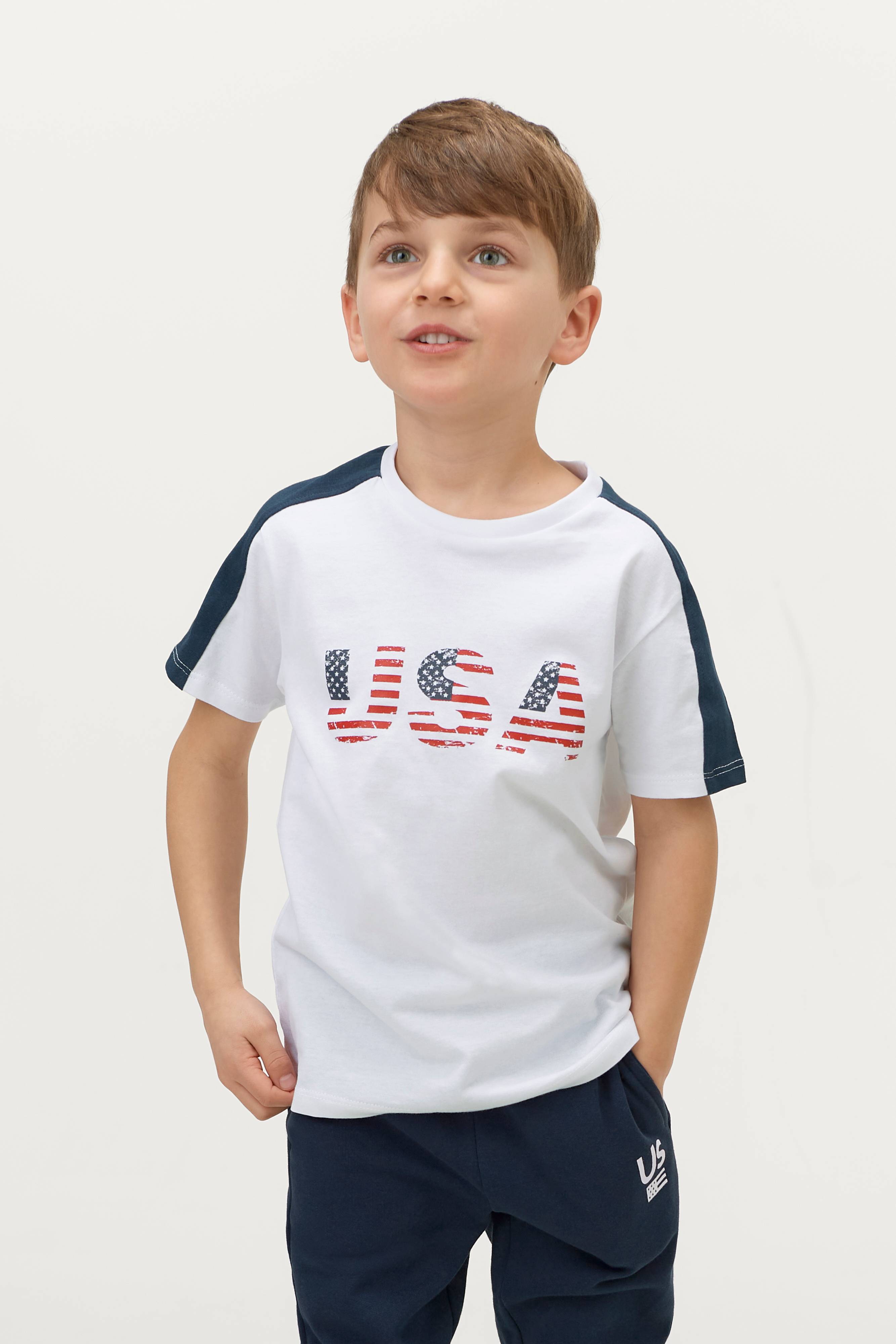 Kortærmet T-shirt i bomuldsjersey med print foran og kontrastfarvet panel på ærmerne.