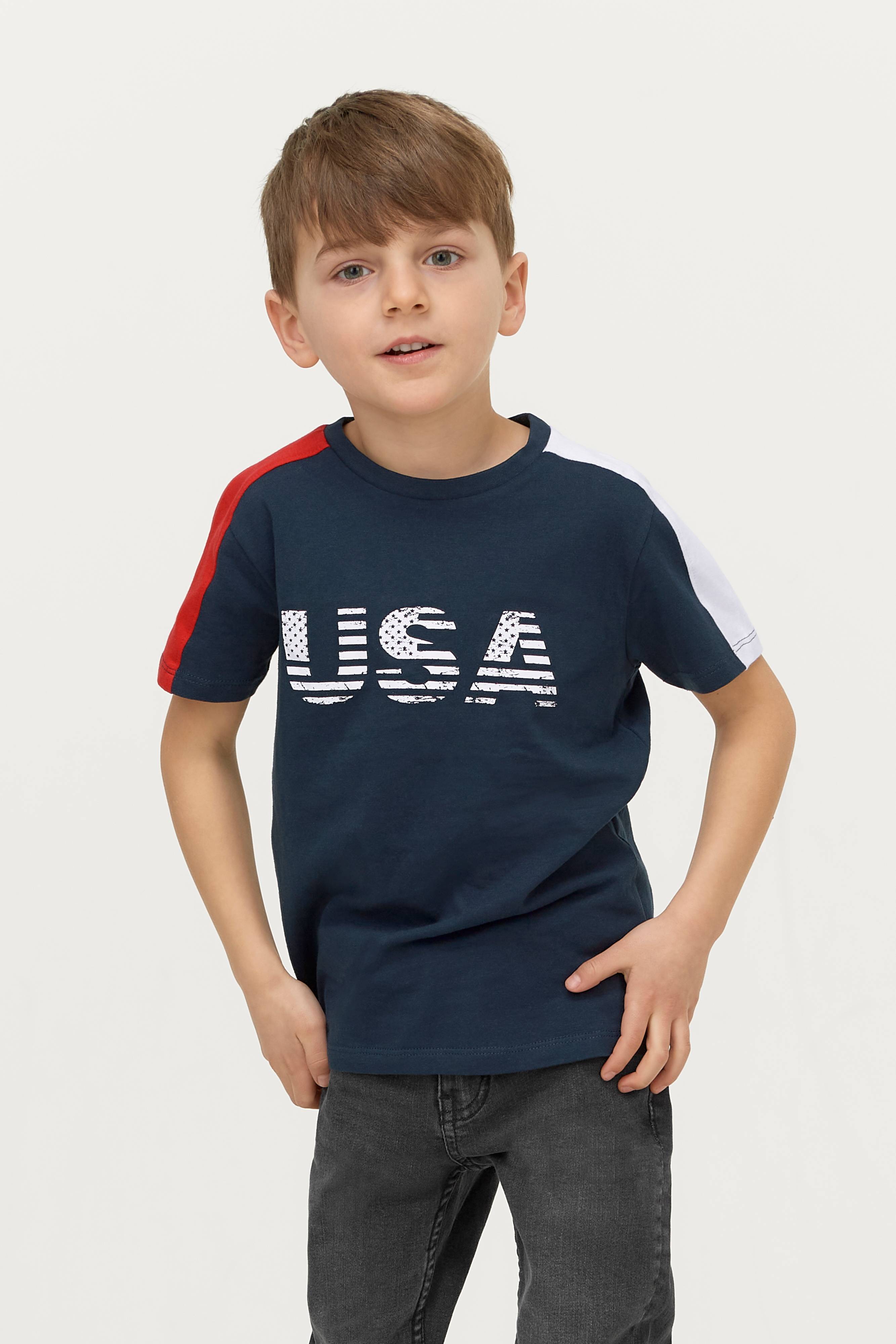 Kortærmet T-shirt i bomuldsjersey med print foran og kontrastfarvet panel på ærmerne.