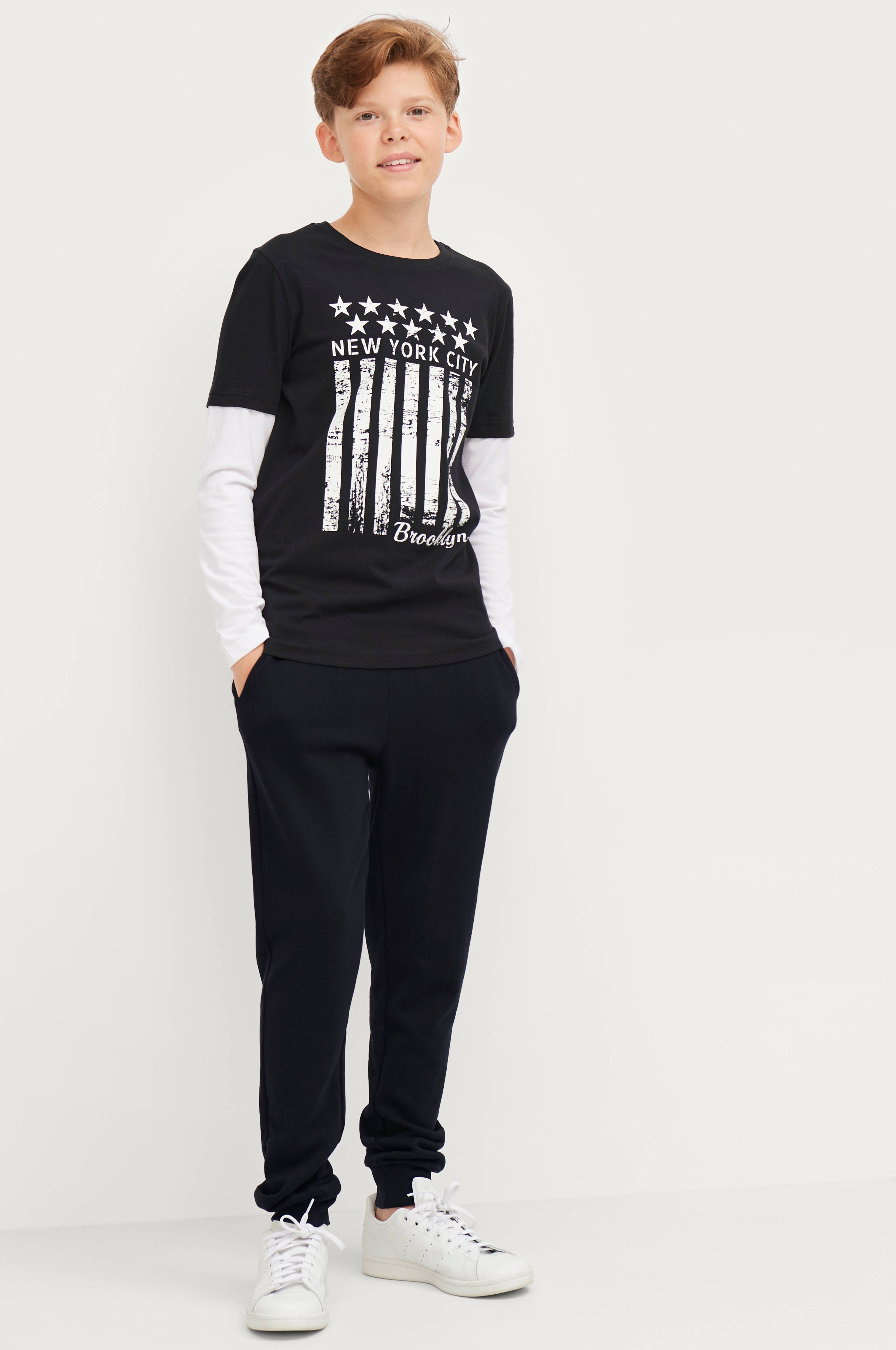 Modellen er 159 cm høj og bærer en str. 146/152
