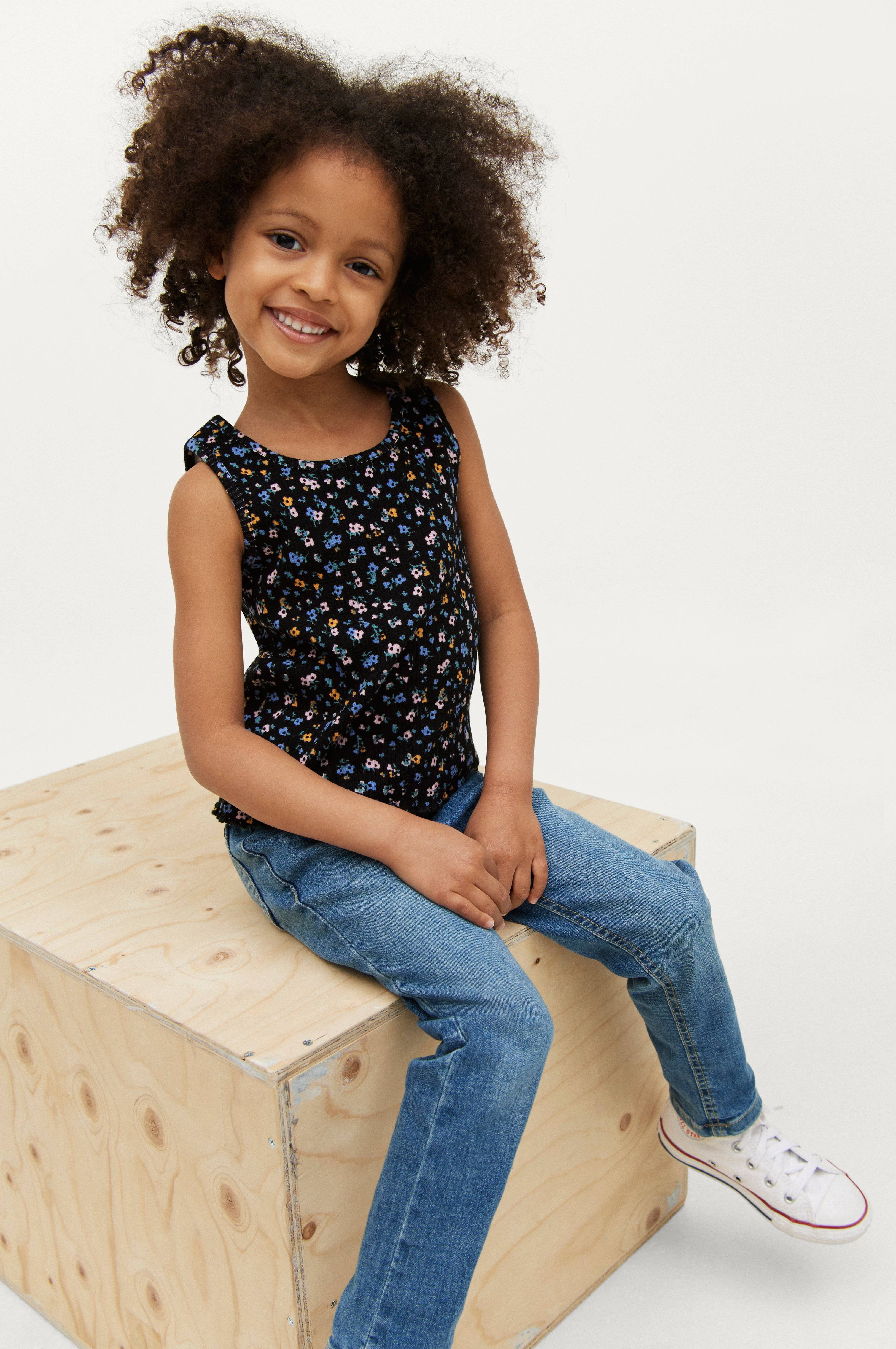 Tanktop i rib med bølget kant forneden og smalt kantbånd i hals og ærmegab.
