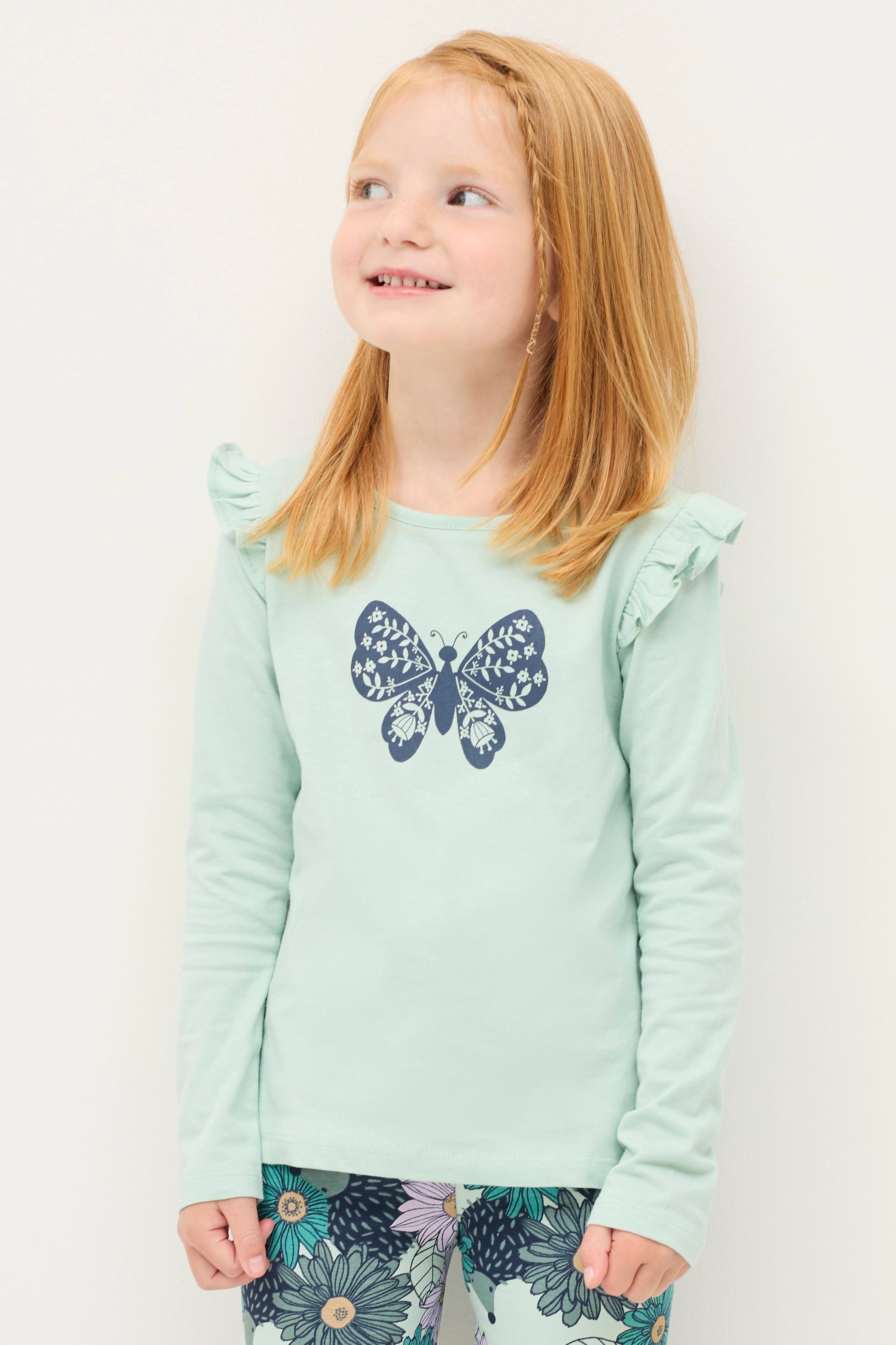• Langærmet top • Rund halsudskæring • Volanter omkring skuldrene • Tryk foran • Ellos samarbejder med Better Cotton for at forbedre bomuldsdyrkningen globalt. Better Cotton er en global nonprofitorganisation, der underviser bomuldsdyrkere i metoder til mere bæredygtig bomuldsdyrkning og arbejder for mere effektiv brug af vand og reduceret brug af pesticider. Better Cotton bringer forbedrede sociale, økonomiske og miljømæssige forhold for bomuldsbønder. Ved at vælge vores bomuldsprodukter støtter du vores investering i Better Cottons mission. Better Cotton er fremskaffet via et system med massebalance og kan ikke fysisk spores til slutprodukter. Besøg bettercotton.org/learnmore for mere information om Better Cotton.