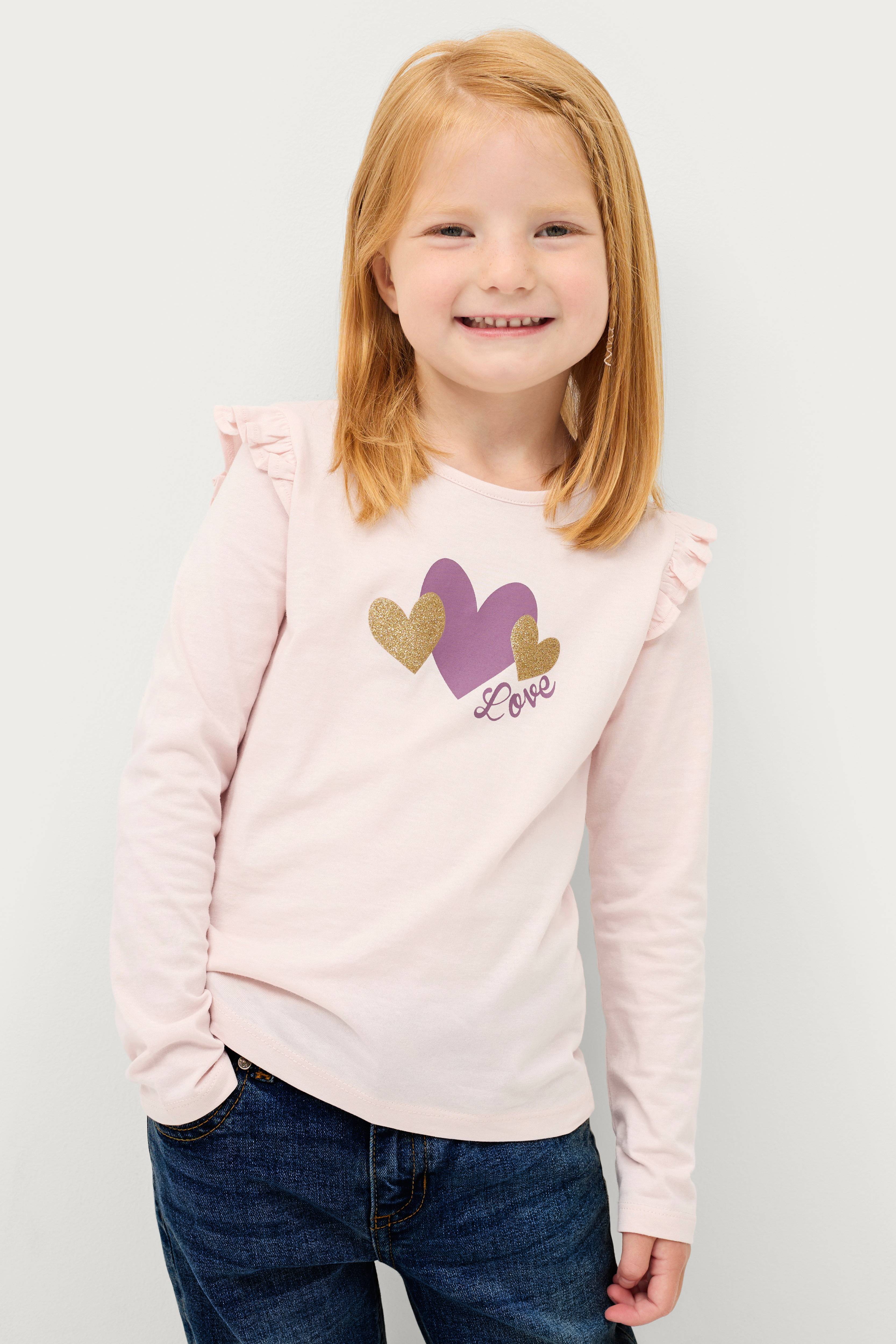 • Langærmet top • Rund halsudskæring • Volanter omkring skuldrene • Tryk foran • Ellos samarbejder med Better Cotton for at forbedre bomuldsdyrkningen globalt. Better Cotton er en global nonprofitorganisation, der underviser bomuldsdyrkere i metoder til mere bæredygtig bomuldsdyrkning og arbejder for mere effektiv brug af vand og reduceret brug af pesticider. Better Cotton bringer forbedrede sociale, økonomiske og miljømæssige forhold for bomuldsbønder. Ved at vælge vores bomuldsprodukter støtter du vores investering i Better Cottons mission. Better Cotton er fremskaffet via et system med massebalance og kan ikke fysisk spores til slutprodukter. Besøg bettercotton.org/learnmore for mere information om Better Cotton.