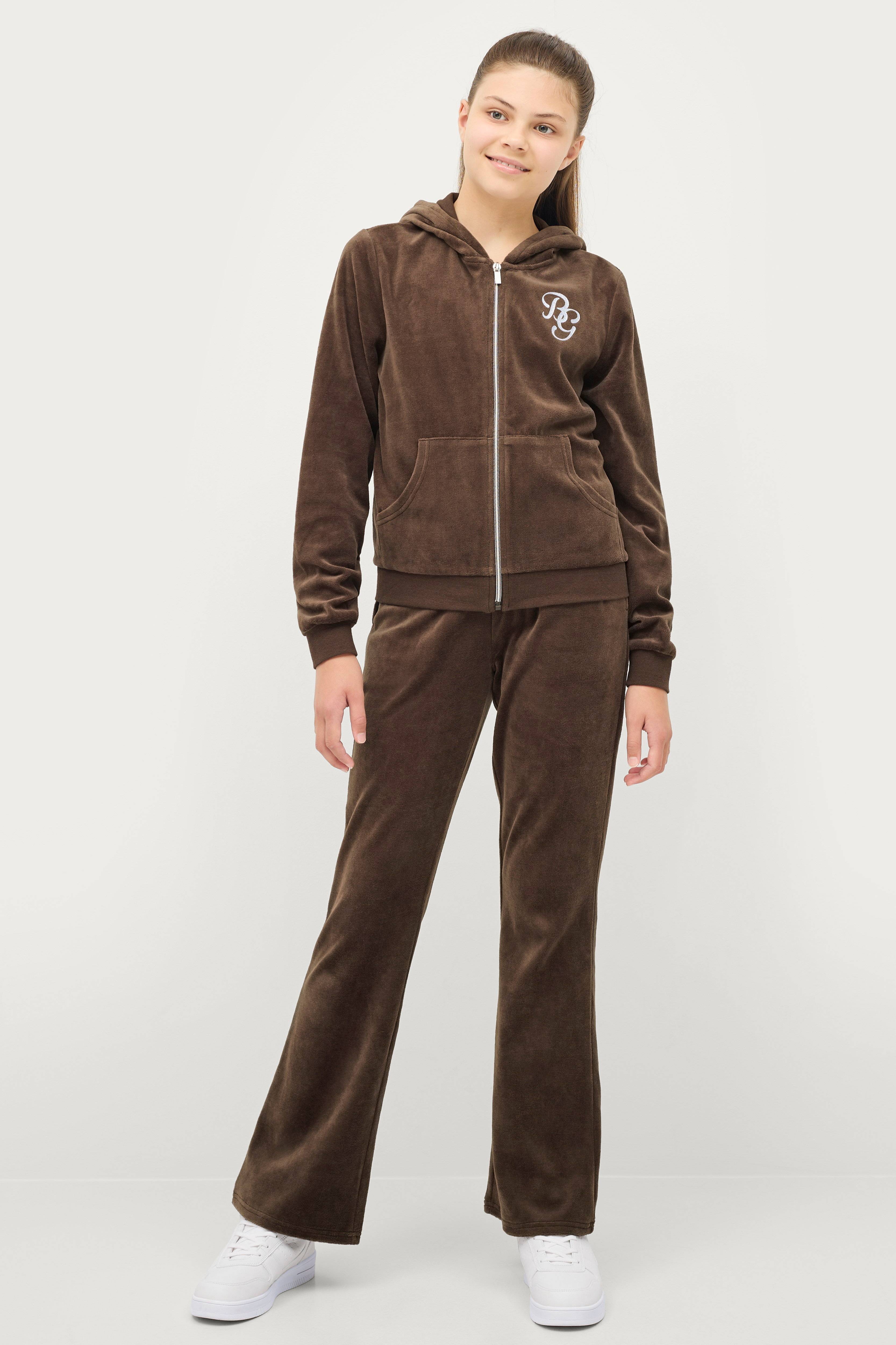 • Trøje med lynlås foran• Hætte• Glitrende tryk på brystet• Lommer på maven• Ribmanchet ved manchetterne og nederst• Bukser med ben med svaj• Linning med elastik og træksnørre• Sidelommer