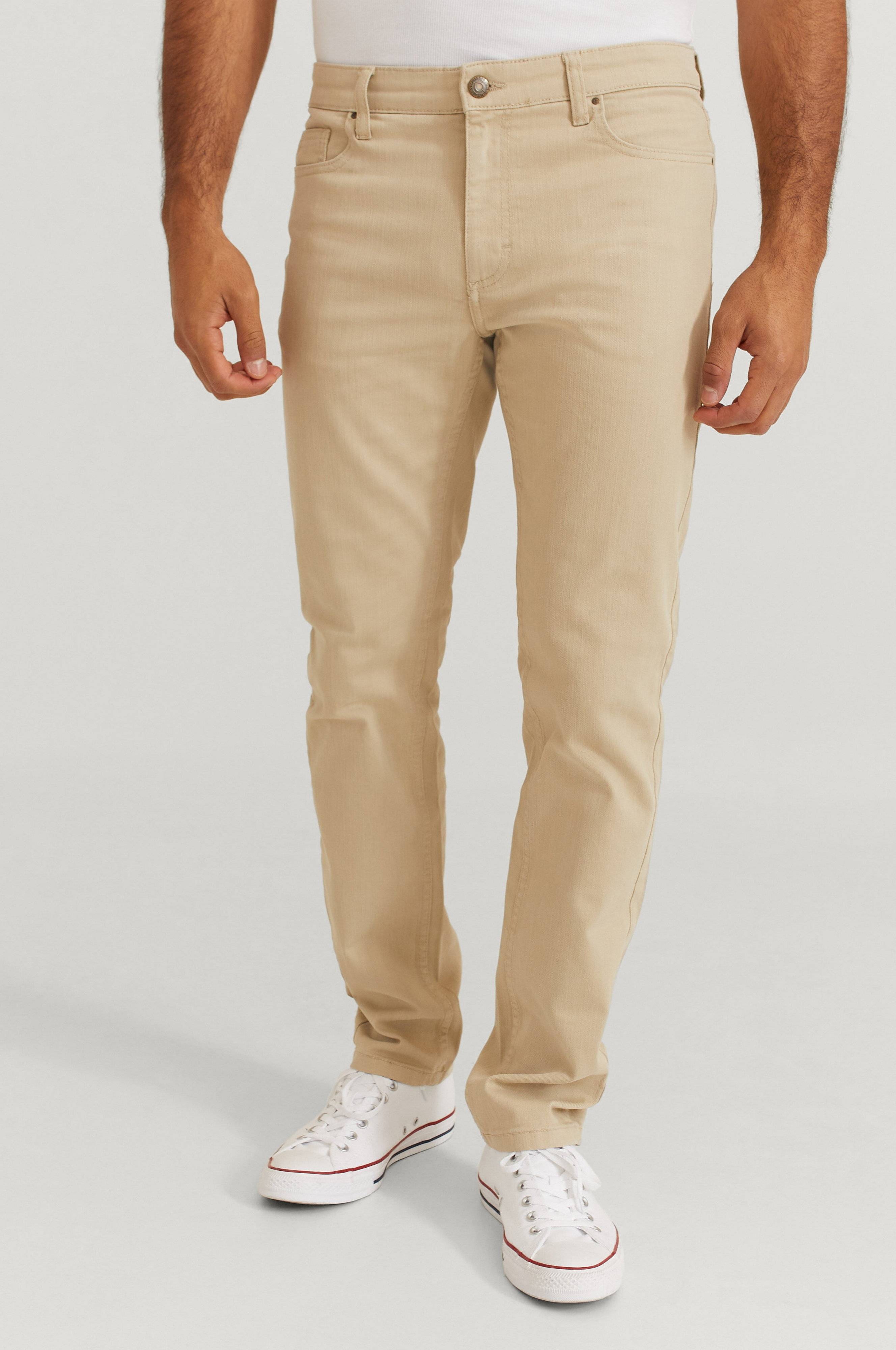 Bukser Gavin fra On Our Terms i stretchtwill af bomuld. 5-lommemodel. Linning med stropper og knap, gylp med lynlås.