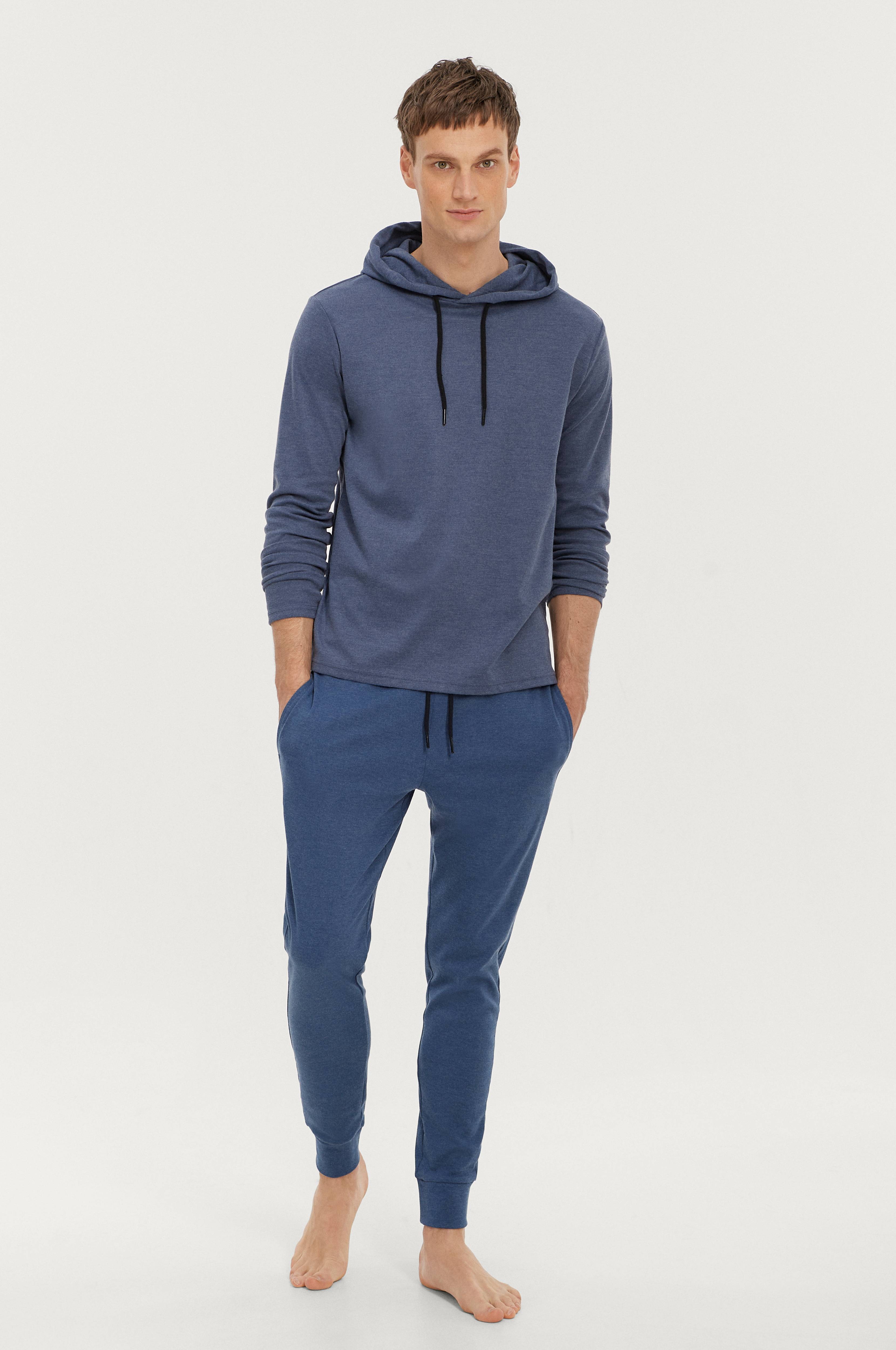 Bukser i blød jersey af bomuld og viskose. Afslappede jerseybukser til afslapning derhjemme. Lommer i siderne og elastisk linning med løbegang.