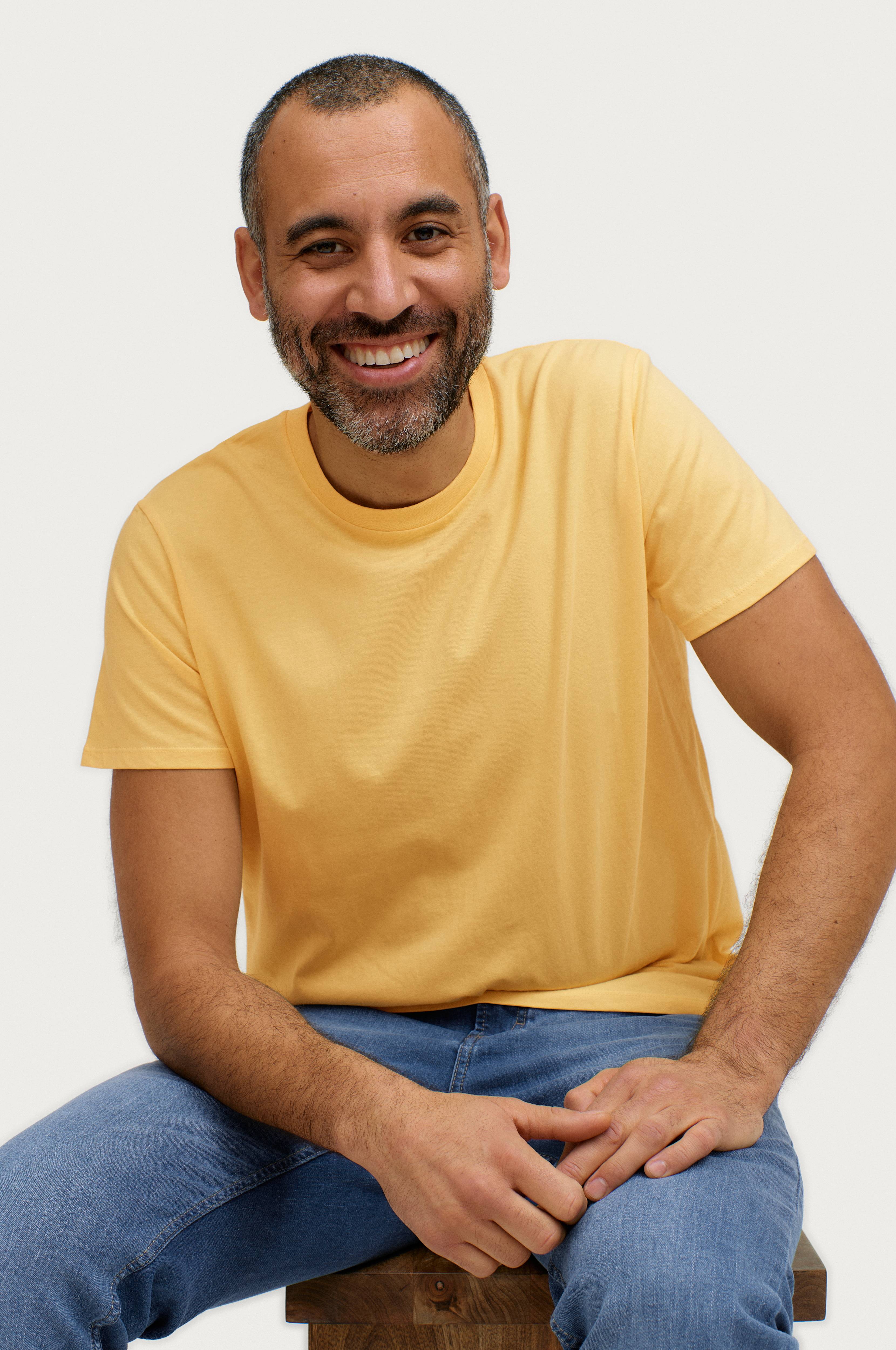 • Kortærmet t-shirt i bomuld• Rund hals• Afrundet, ribbet halsudskæring• Normal pasform