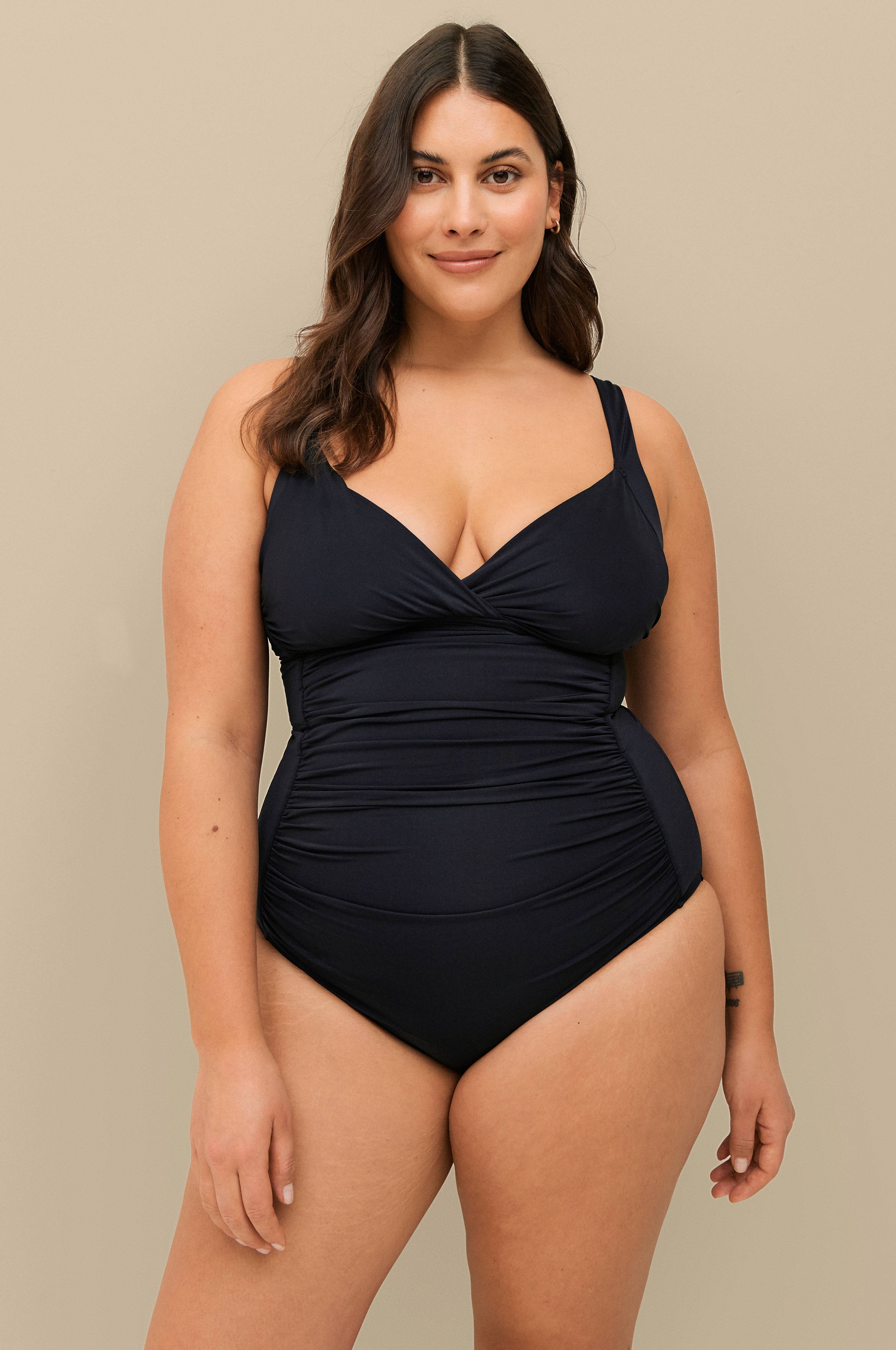 Ellos Plus Collection er gennemsyret af kvalitet og bæredygtighed. Badedragten er designet til kvinder i str. 44-60 med fokus på pasform og komfort. - Drapering foran