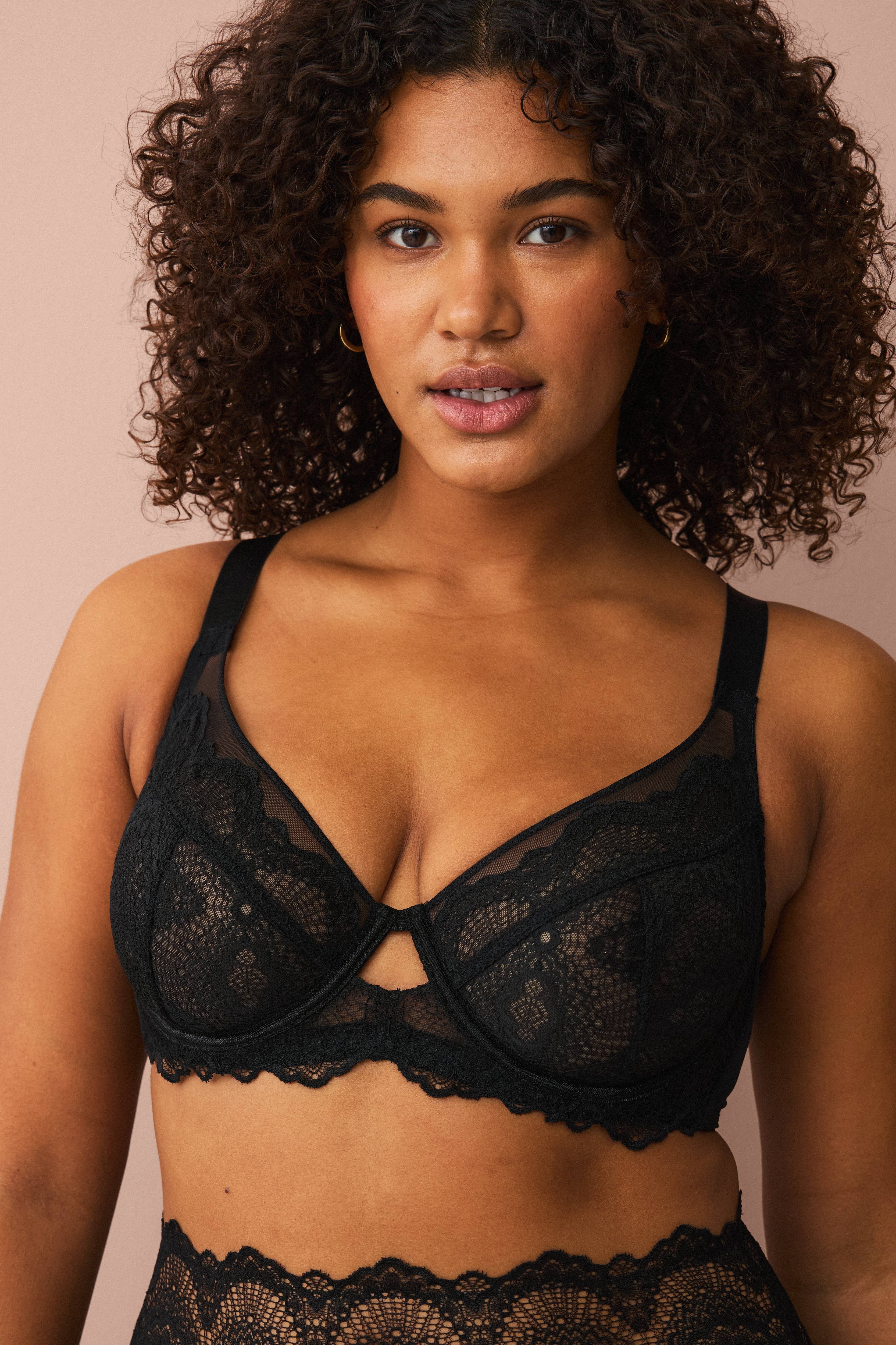 • Uforet bh med bøjler i mesh og blonde• Justérbare, brede skulderstropper• Dekorativ nøglehulsåbning foran• Hægtelukning bagpå• Store størrelser