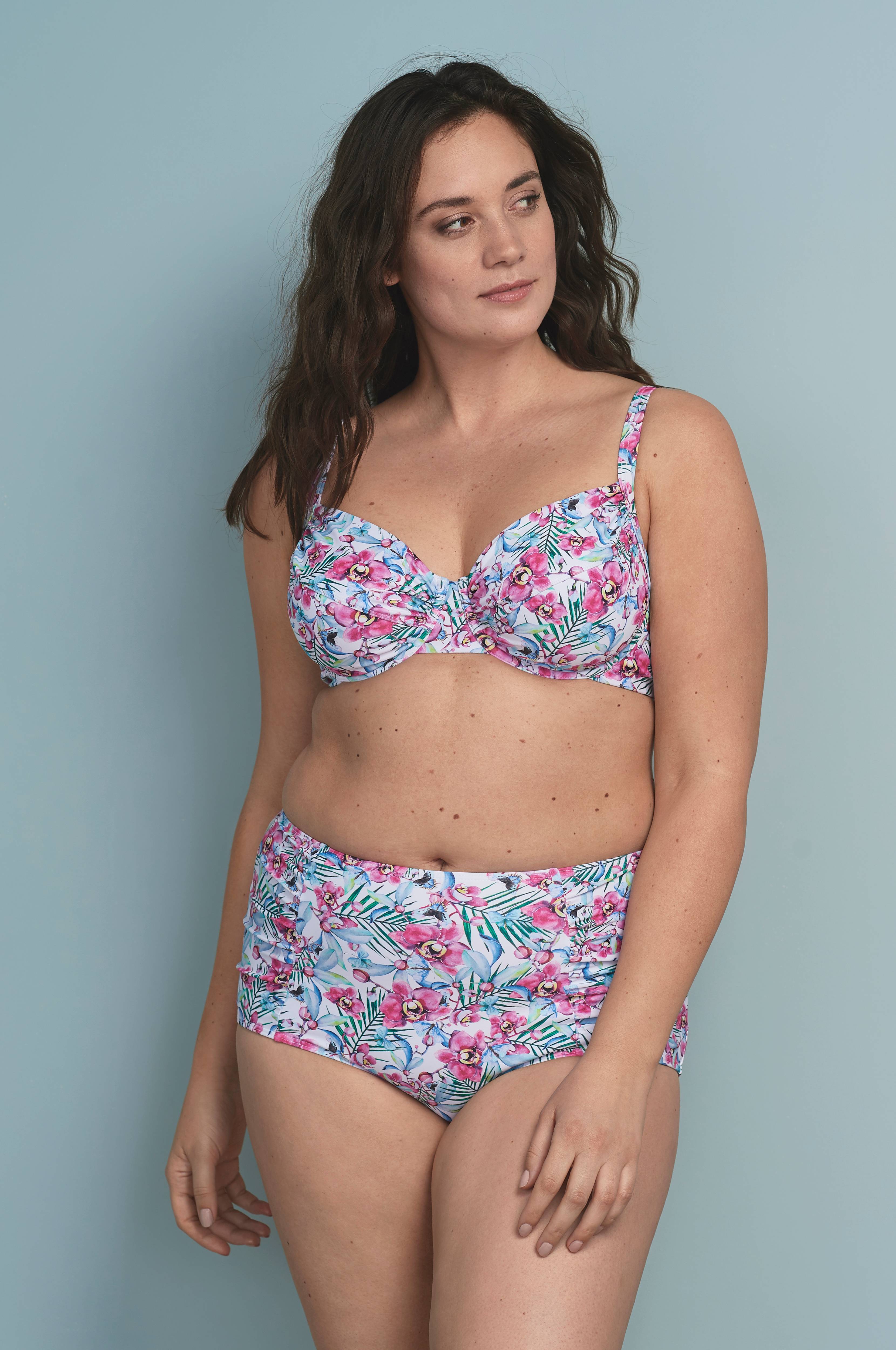 Bikinibukser passer til 50/52 størrelser. Talje høj og skridtstykke af passende bredde.