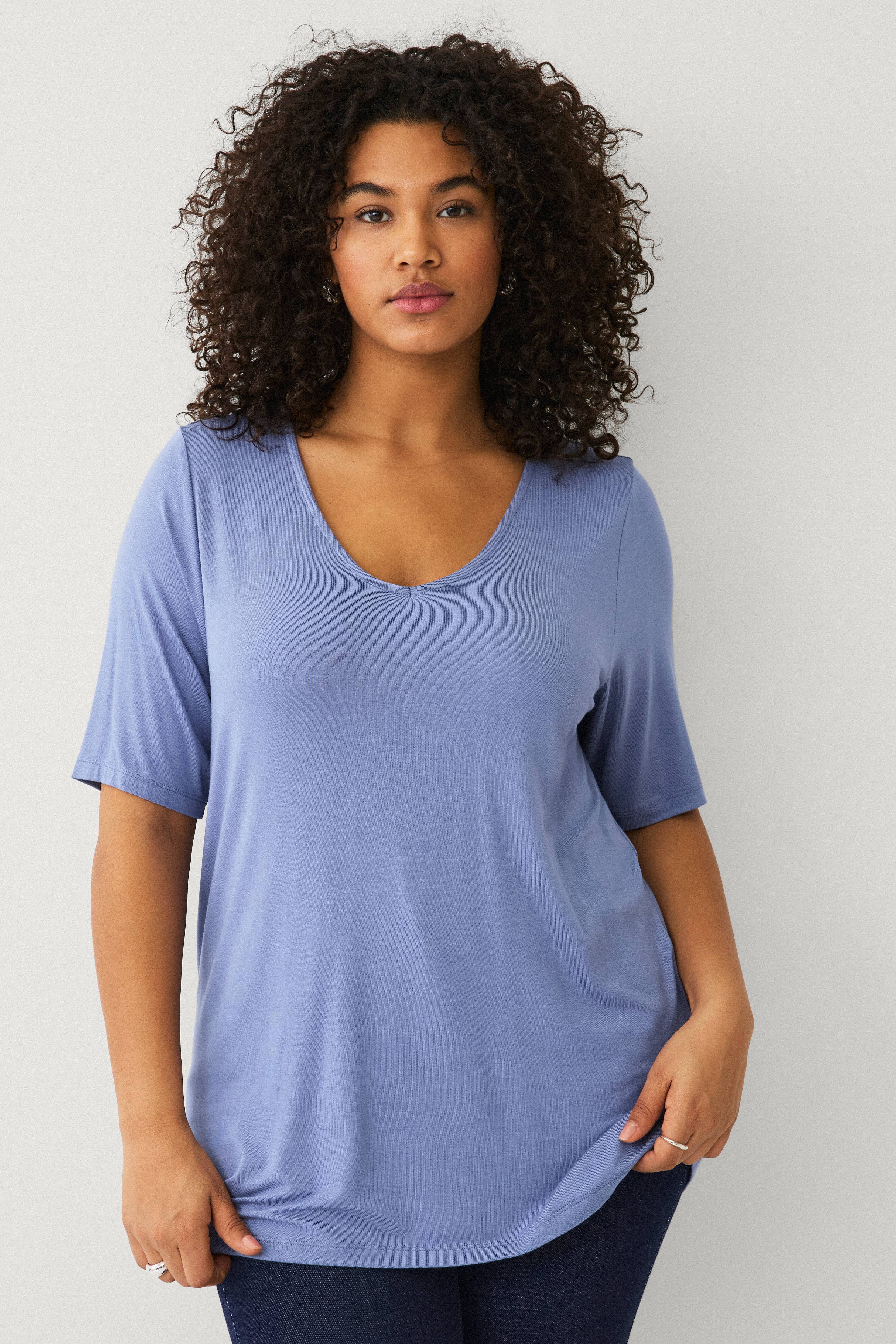 • Kortærmet top i blødt, elastisk, luftigt materiale• V-formet halsudskæring• Stor størrelse• Længde: 74 cm i størrelse XL