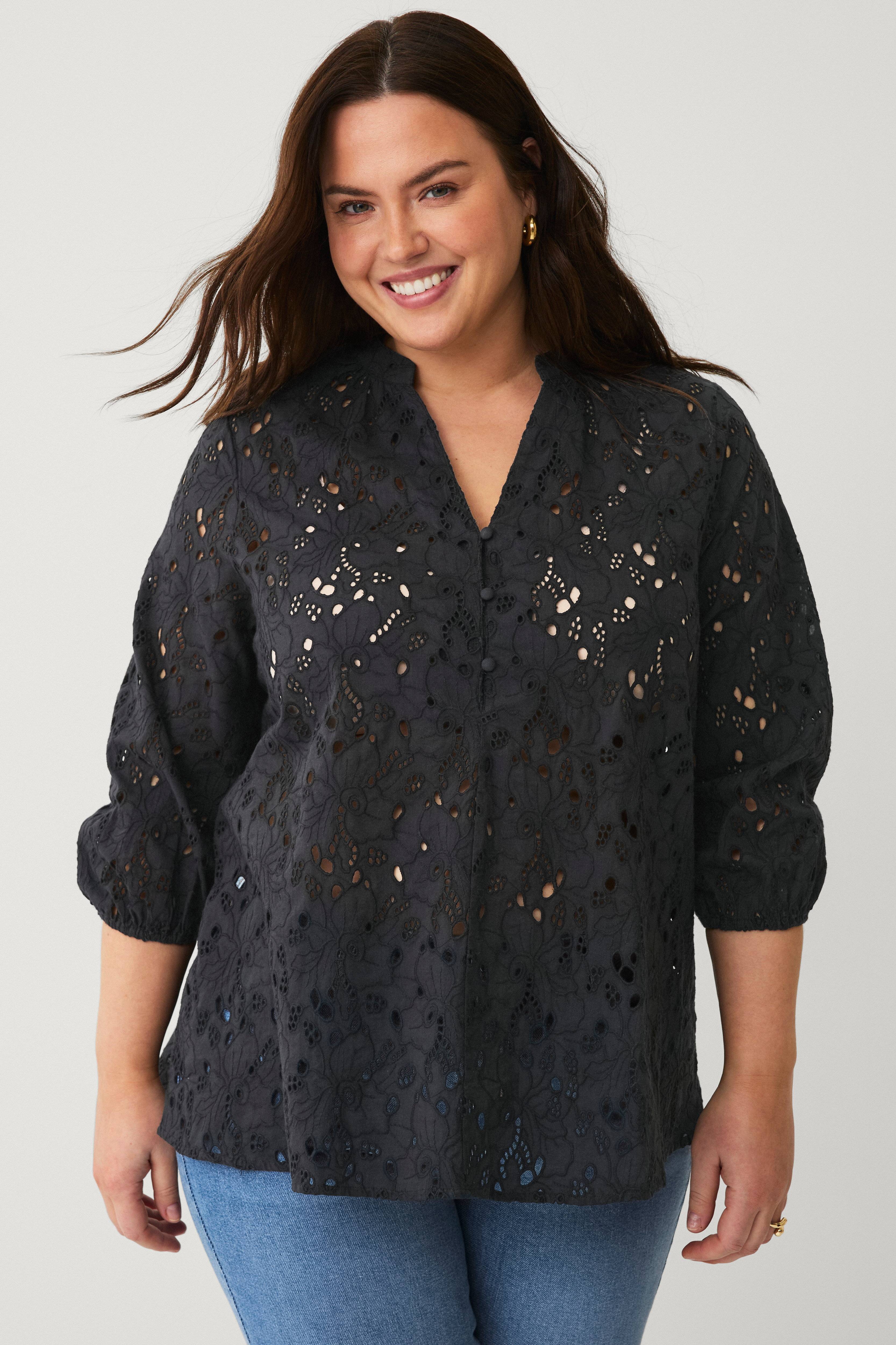 • Bluse i bomuld med hulbroderi hele vejen rundt