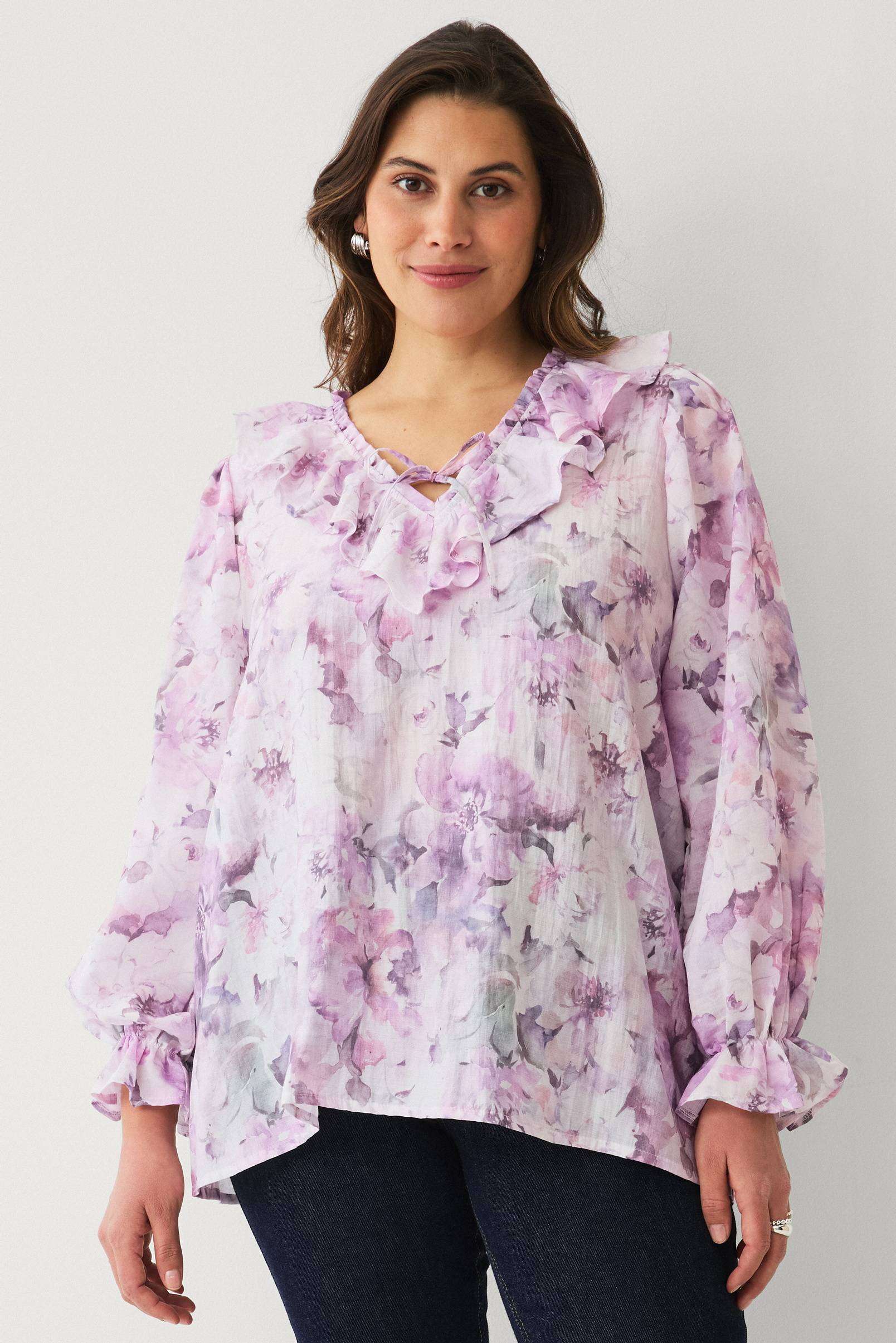 • Bluse med dekorative volanter