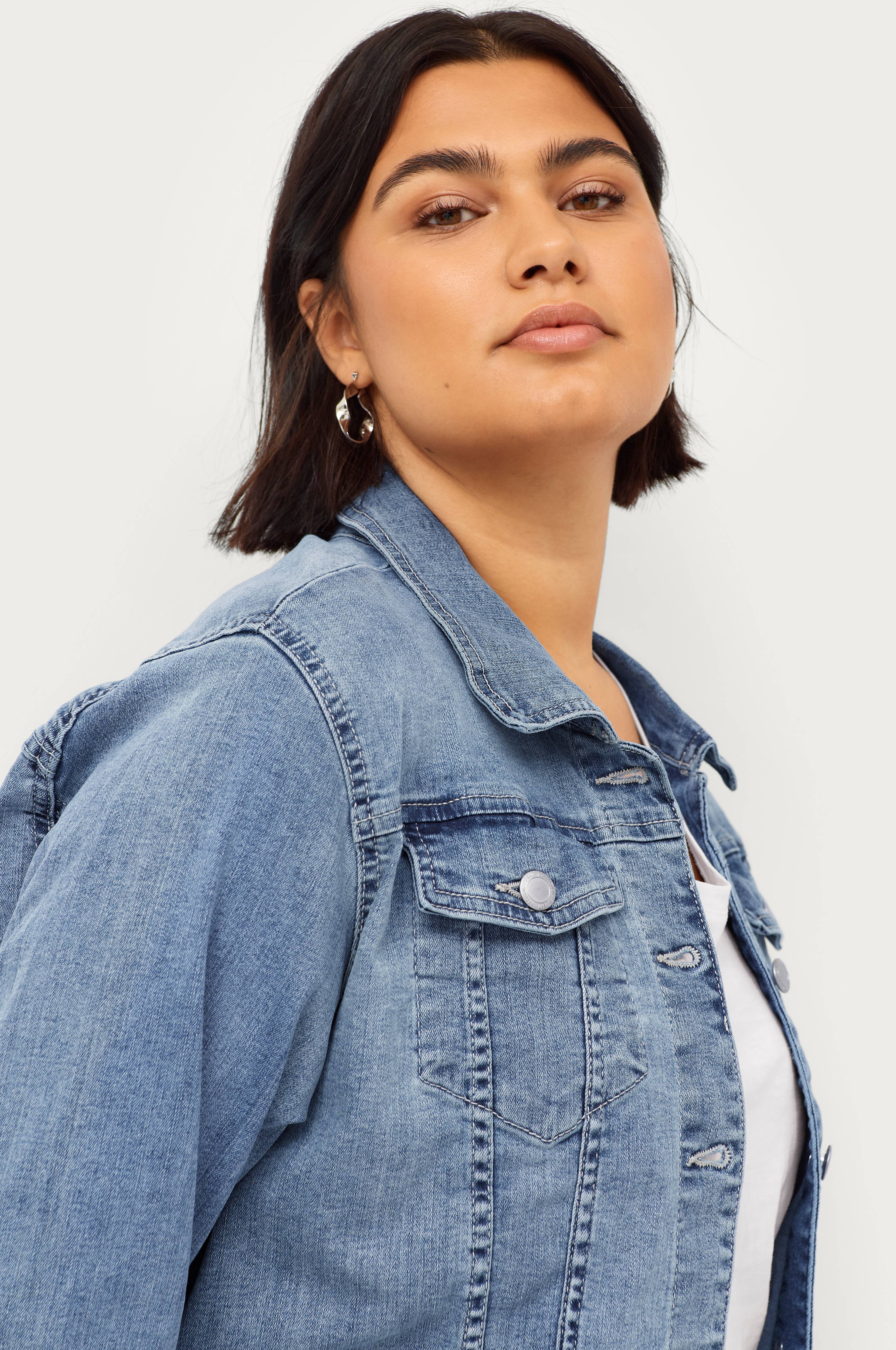 • Klassisk model med metalknapper og to brystlommer