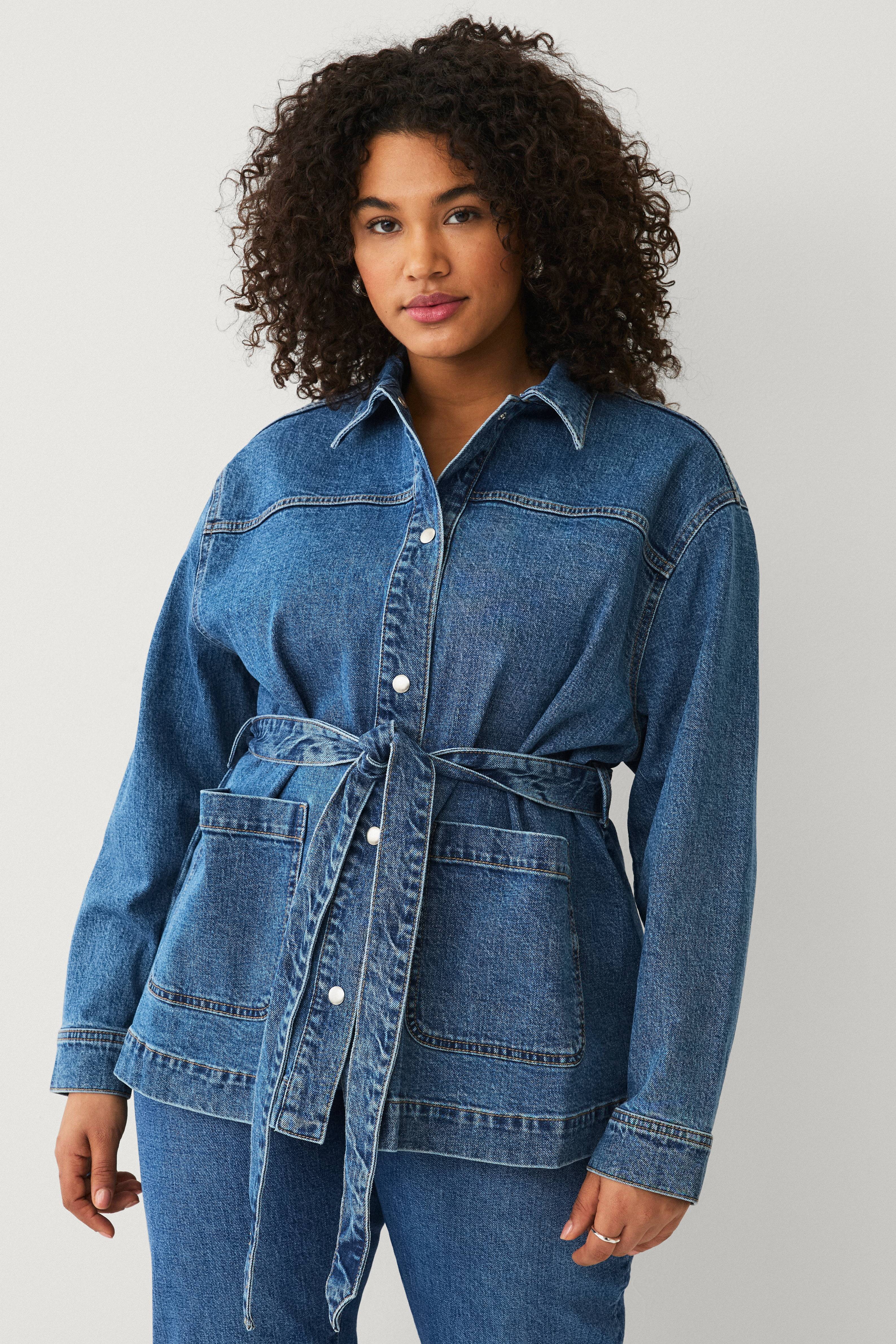 Fin jakke i blødt denimstof. Ulempen er, at de rå kanter ikke er syet i lommerne, så stoffet trævler meget der.
