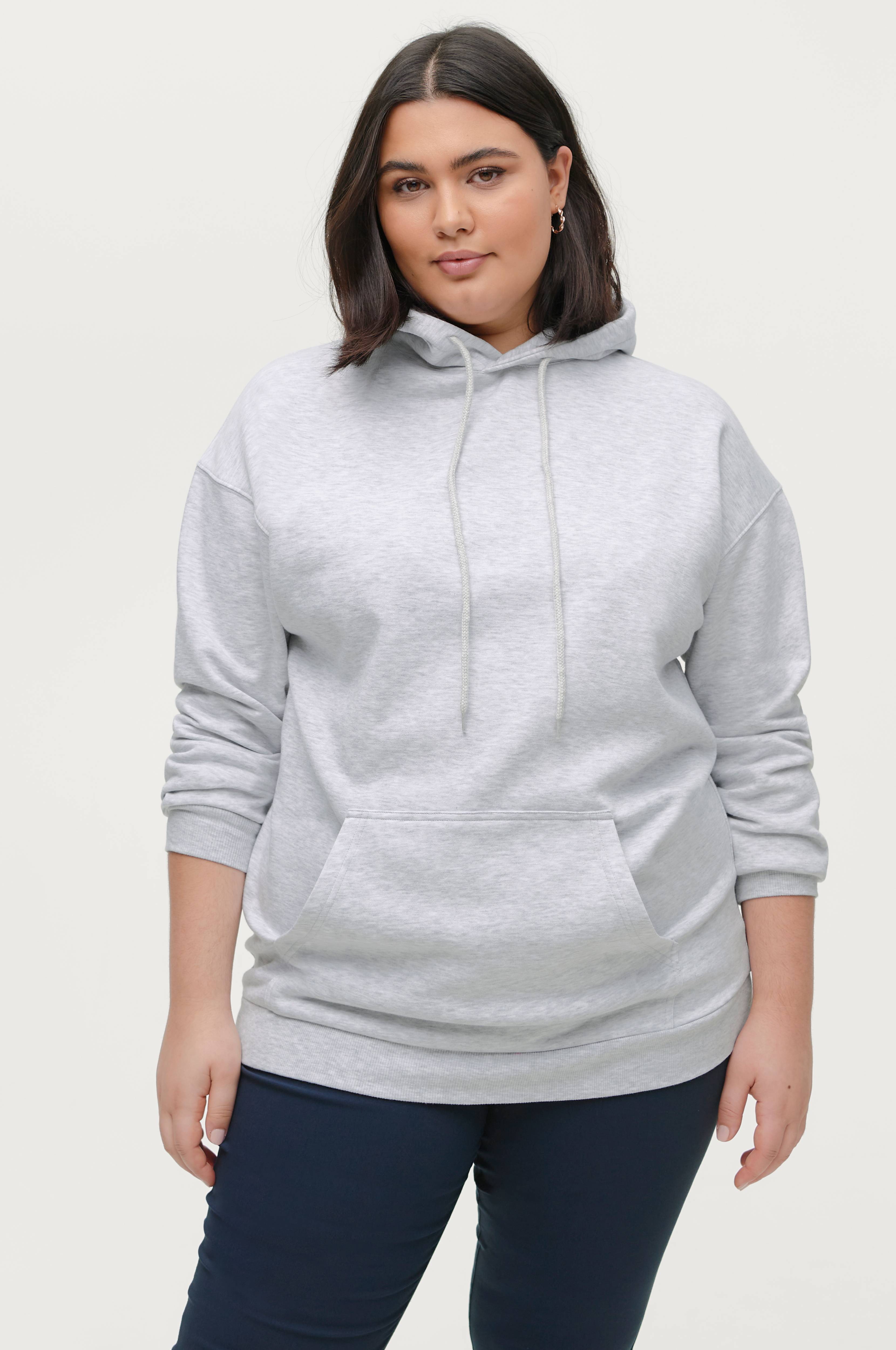 Hættetrøje i oversizemodel med blød, børstet inderside. Hætte med løbegang og kængurulomme. Rib i ærmekant og kanten forneden. Længde ca. 80 cm i str. 42/44.