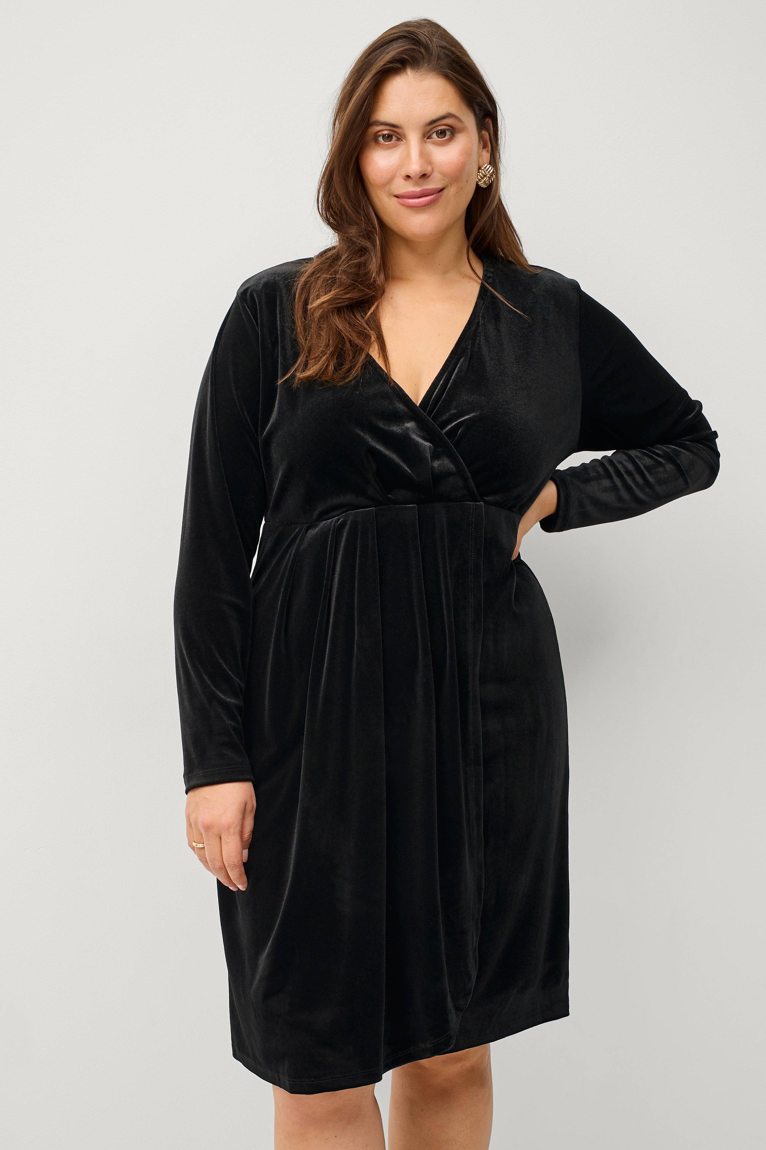• Syet i folder model i fløjl• Defineret, bølgeformet talje• Langt ærme• Længde: 108 cm i størrelse 42/44