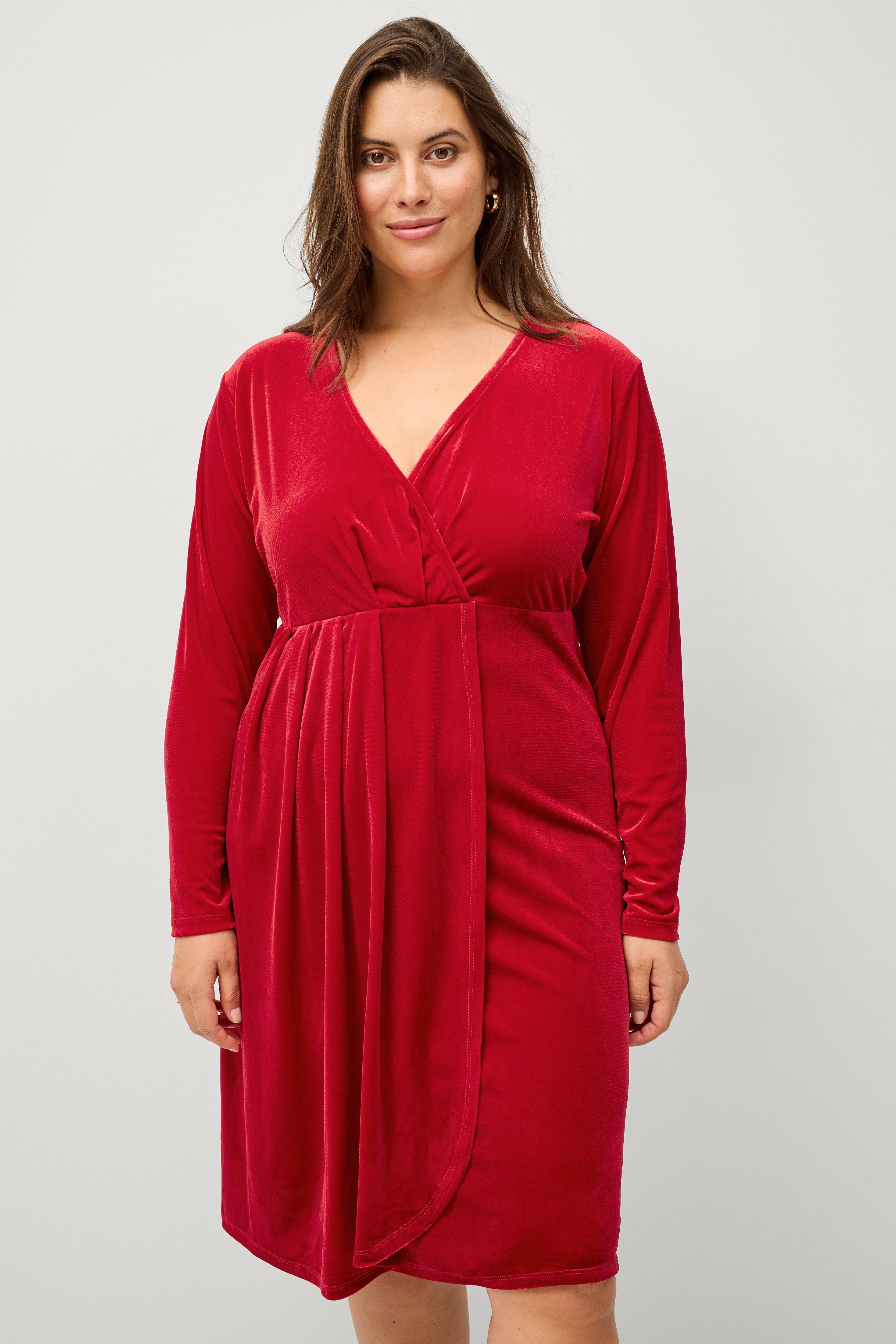 • Syet i folder model i fløjl• Defineret, bølgeformet talje• Langt ærme• Længde: 108 cm i størrelse 42/44