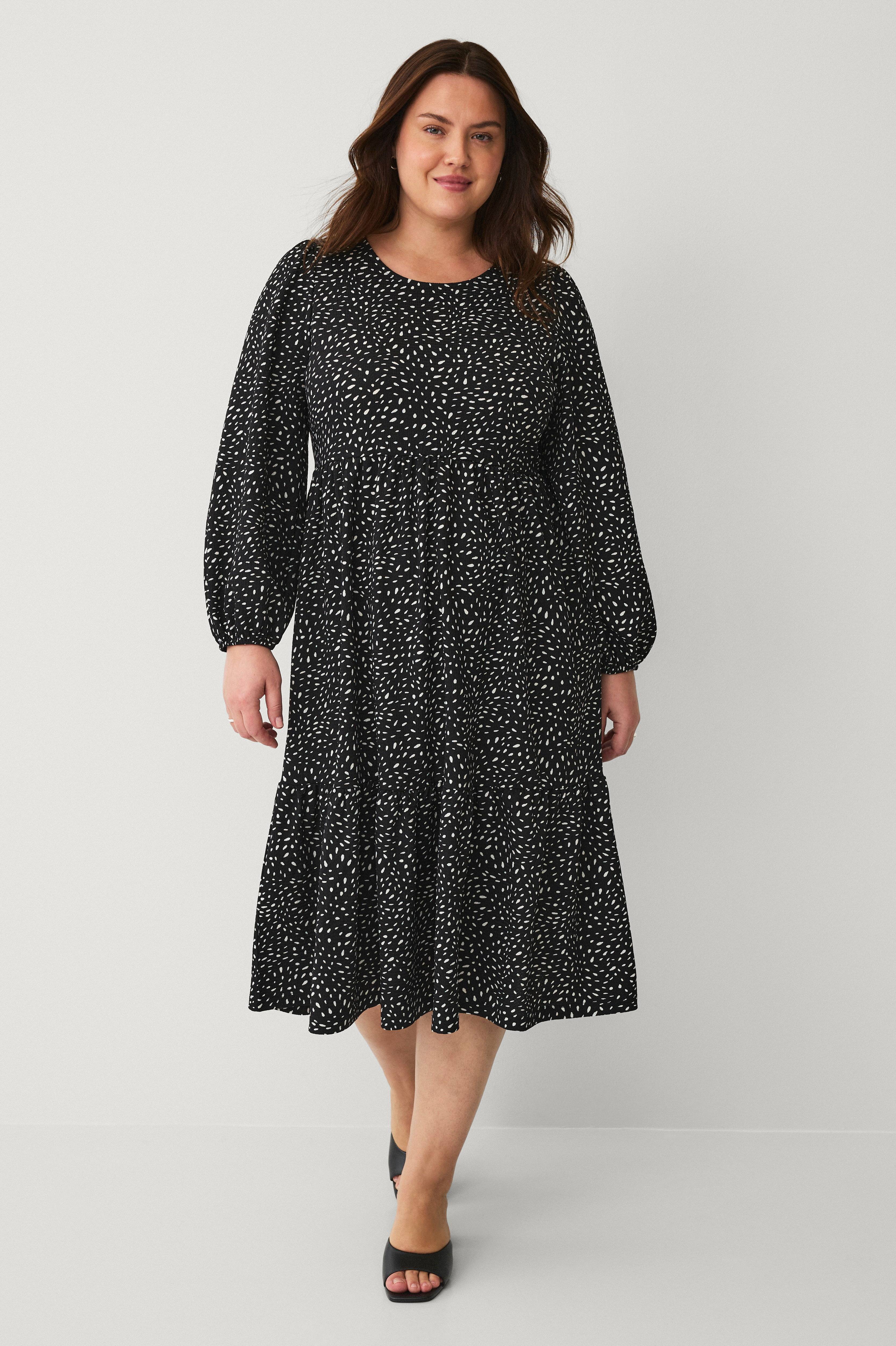 • Midikjole med volant nederst