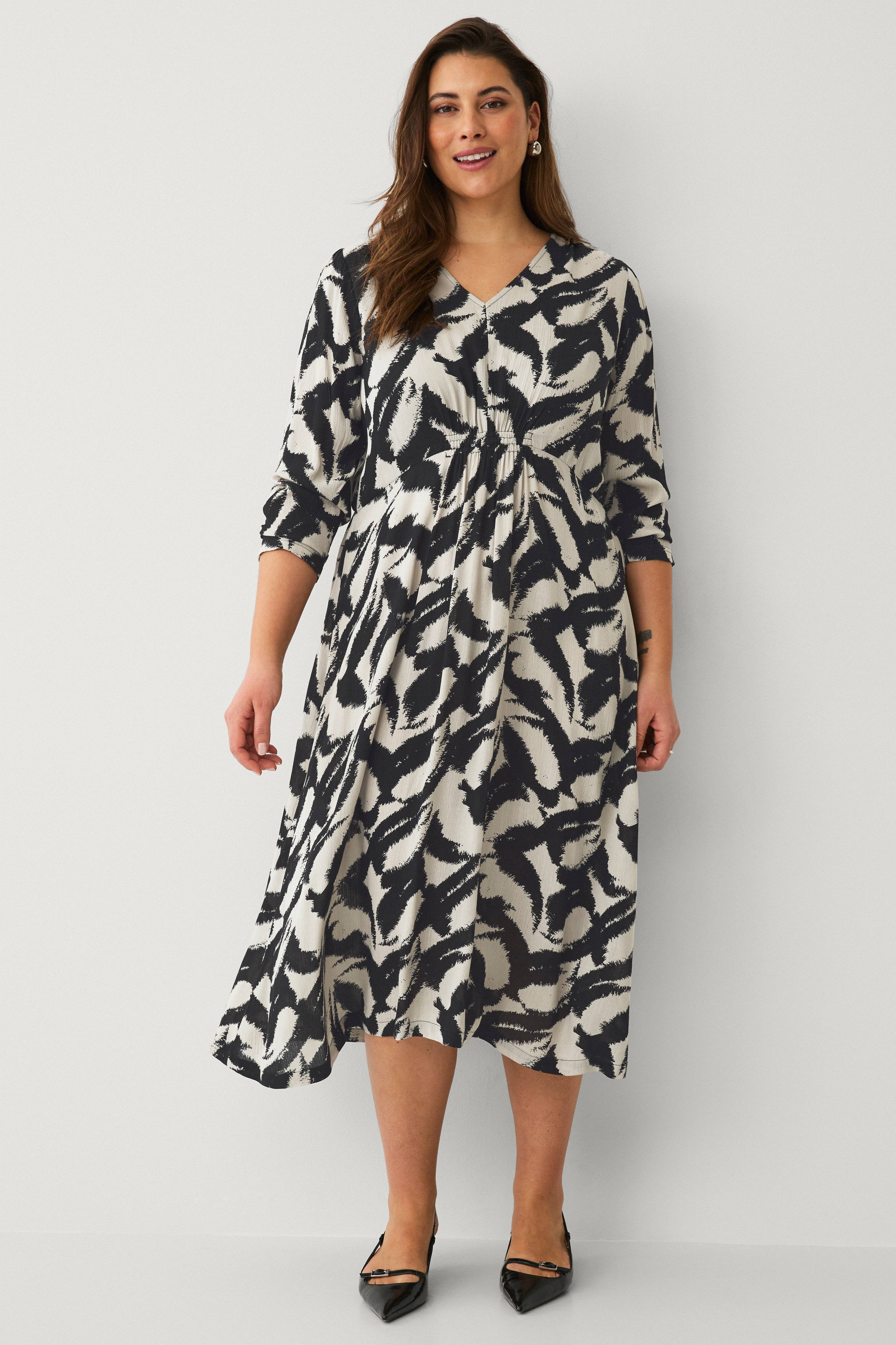 • Kjole med v-formet halsudskæring• Elastik midt foran med samling• Ballonærmer med samling ved manchetterne• Længde: 120 cm i størrelse XL