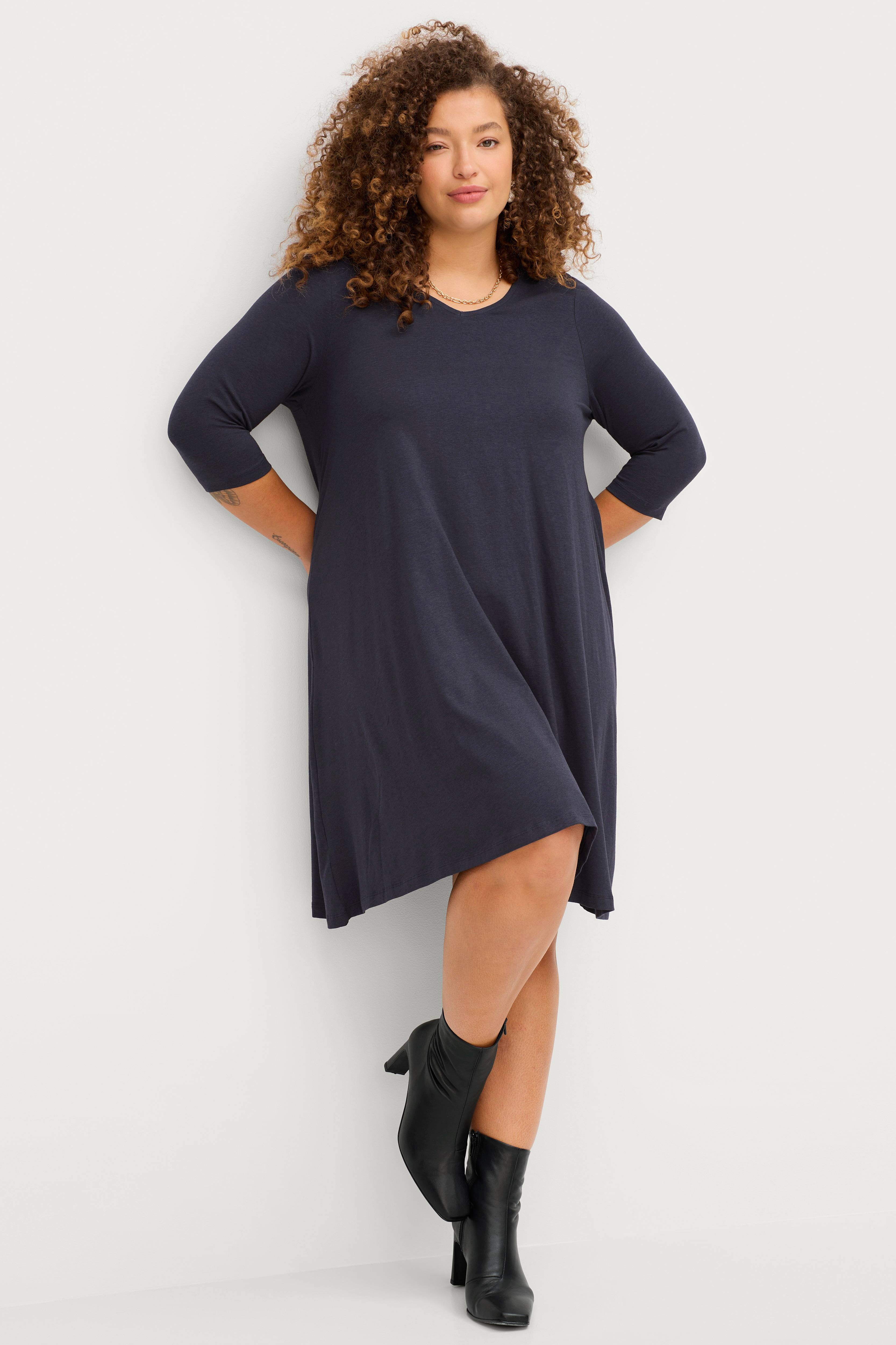 • Bredt A-linje design• V-udskæring• 3/4 lange ærmer• Fremstillet af elastisk jersey• Længde: 100 cm i størrelse 46/48