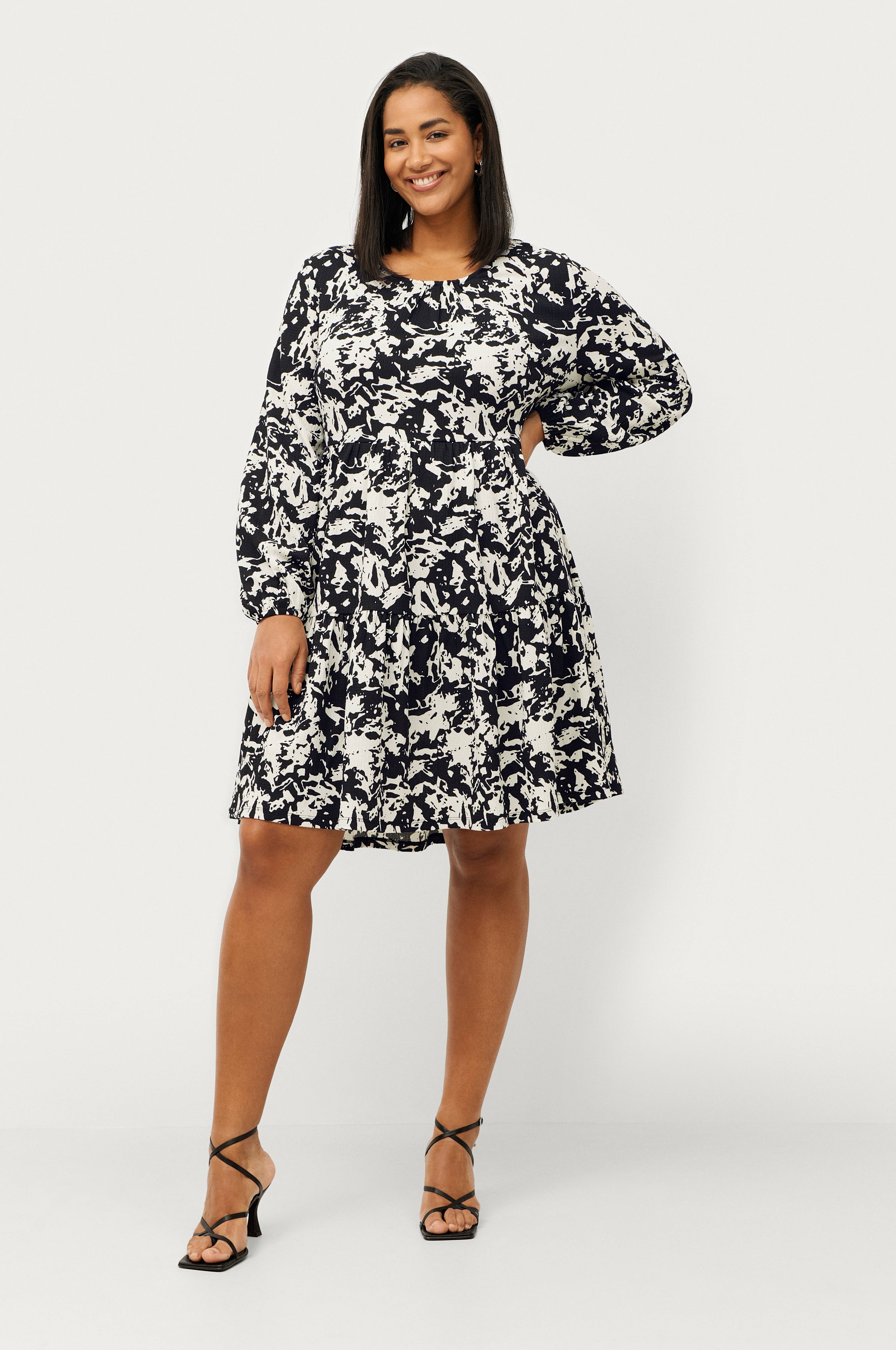 • Model med svaj med volant nederst • Lange ærmer med elastiske manchetter • Rund hals med samling foran • Behandlet kvalitet • Længde: 100 cm i størrelse 42/44