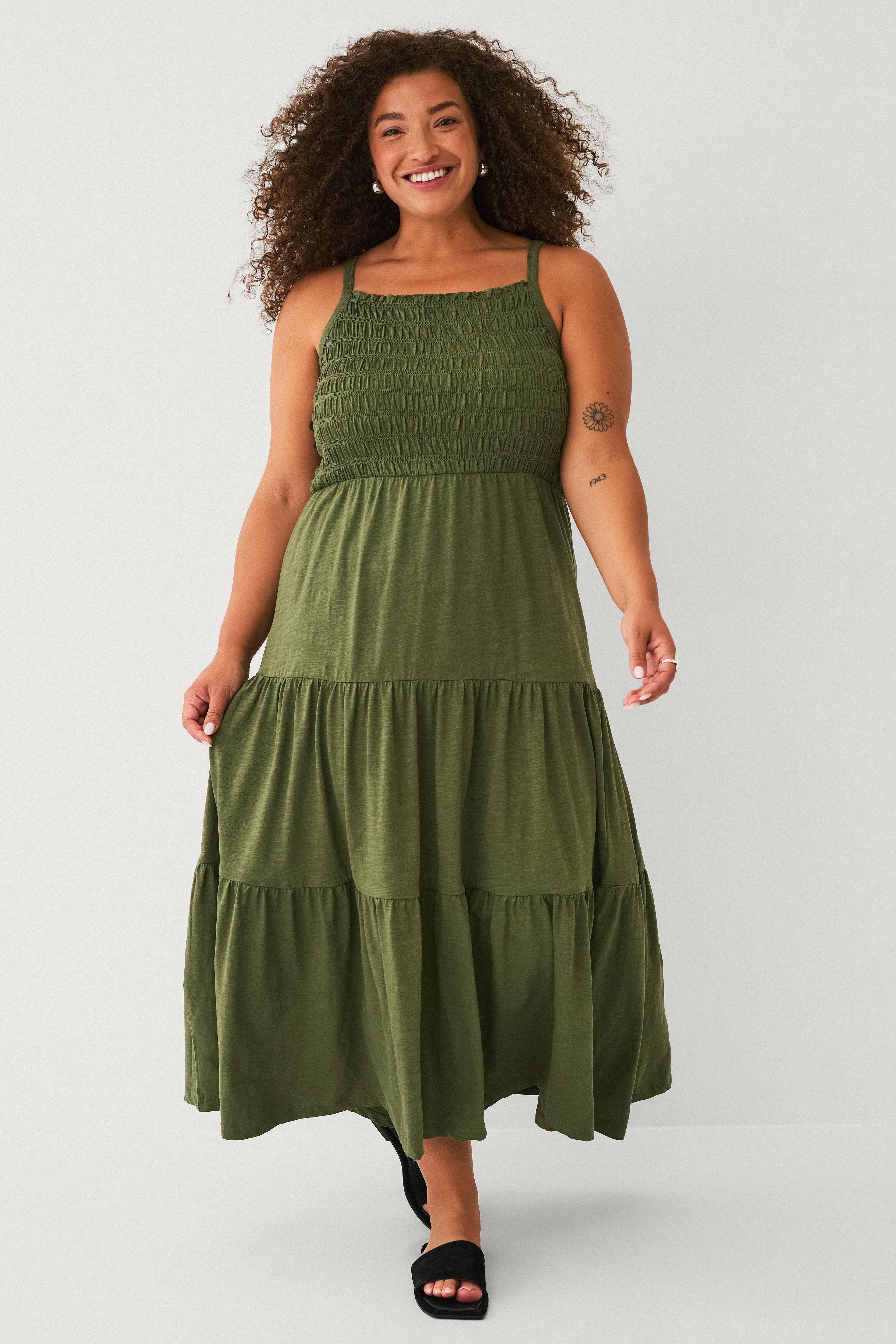 Helt vidunderlig behagelig sommerkjole har alle farver. Passende længde. Og passer til en fyldig krop