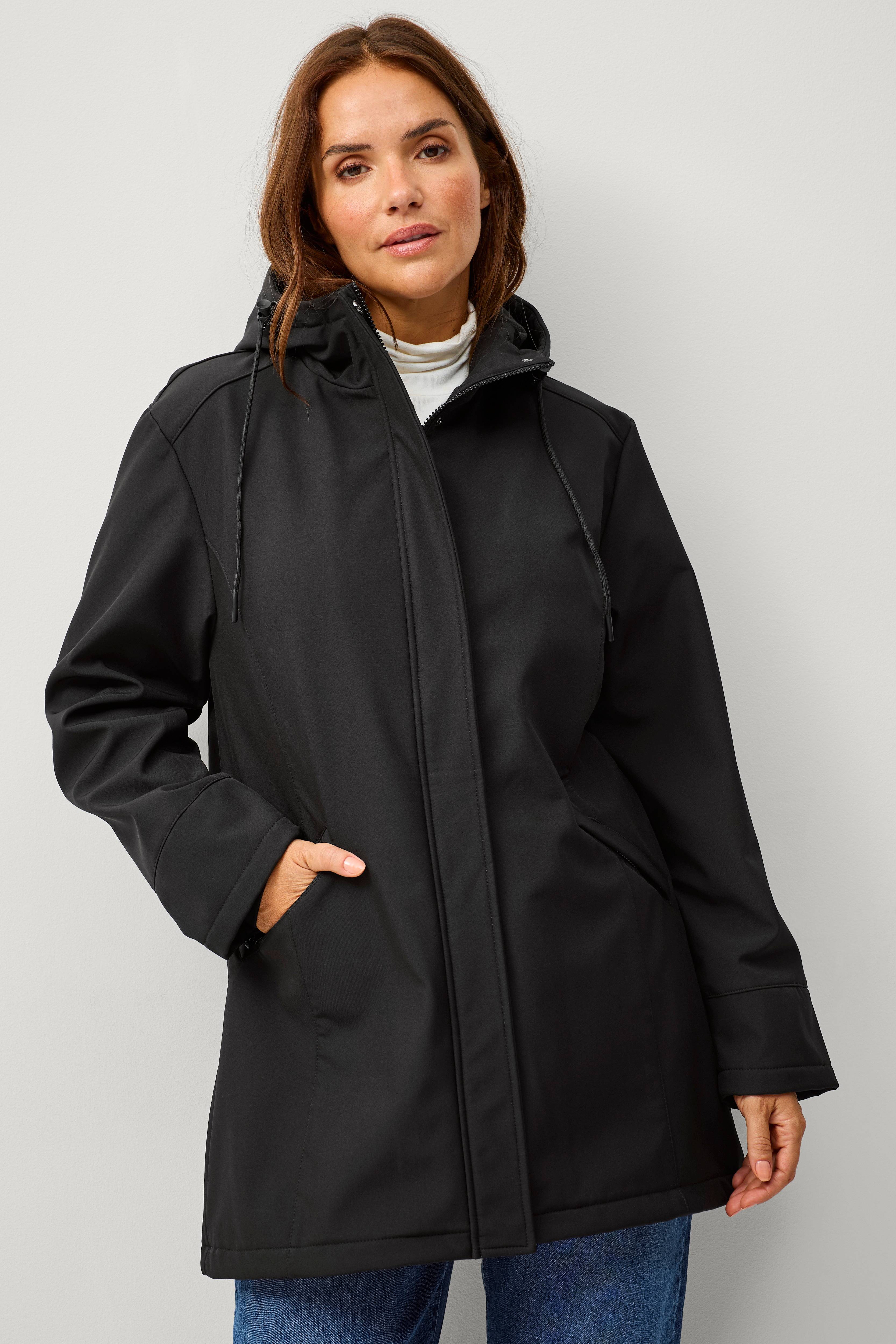 • Jakke i softshell med blødt fleece for• To-vejs lynlås med vindflap• Hætte med træksnørre• Lynlåslommer foran• Skjulte ribmanchetter ved manchetterne• Længde: 91 cm i størrelse 48