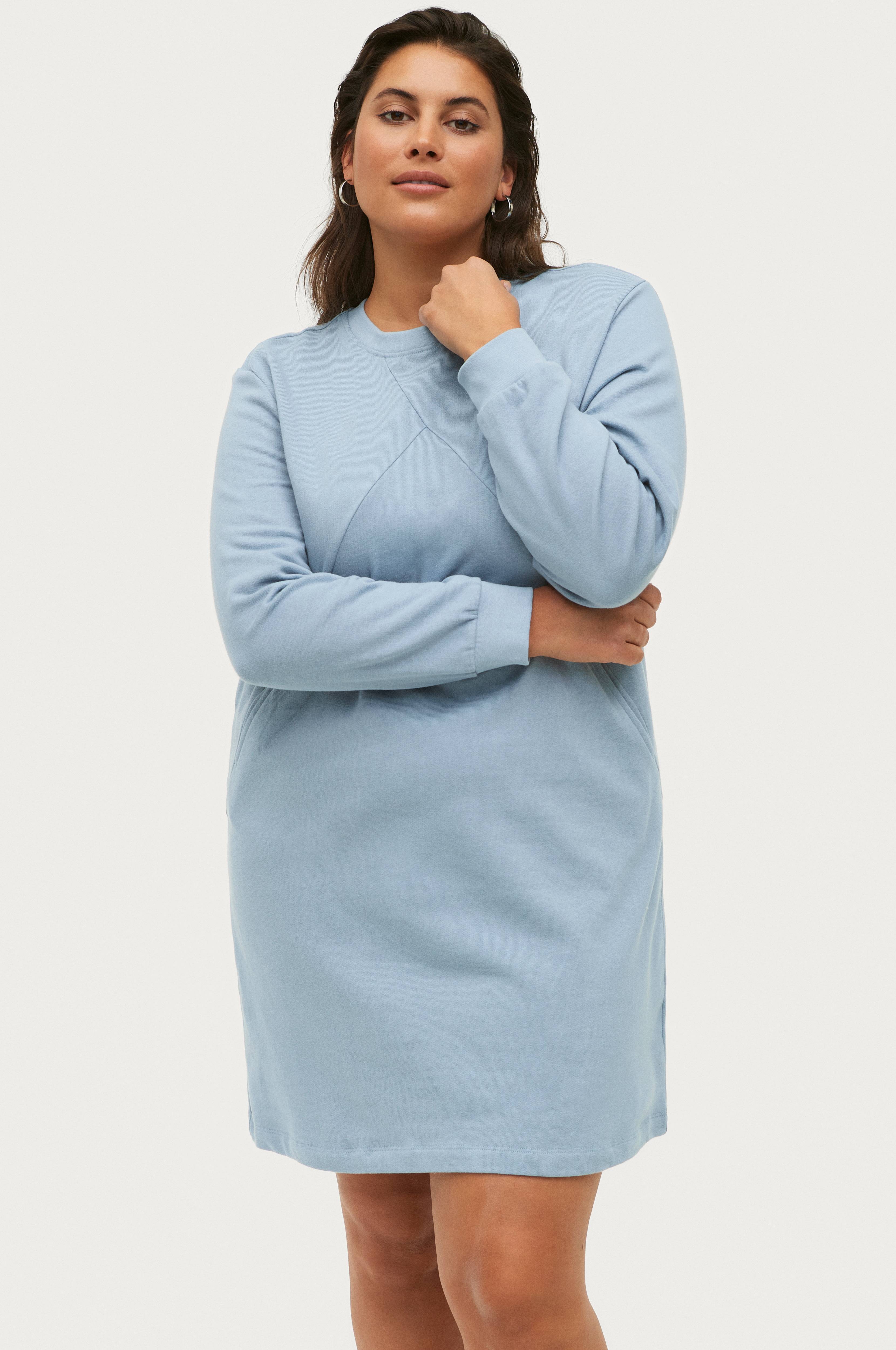 Behagelig sweatshirtkjole med lommer. Passer også til dig, der er kurvet. Varmer både overdel og bagdel. God efter vask også.