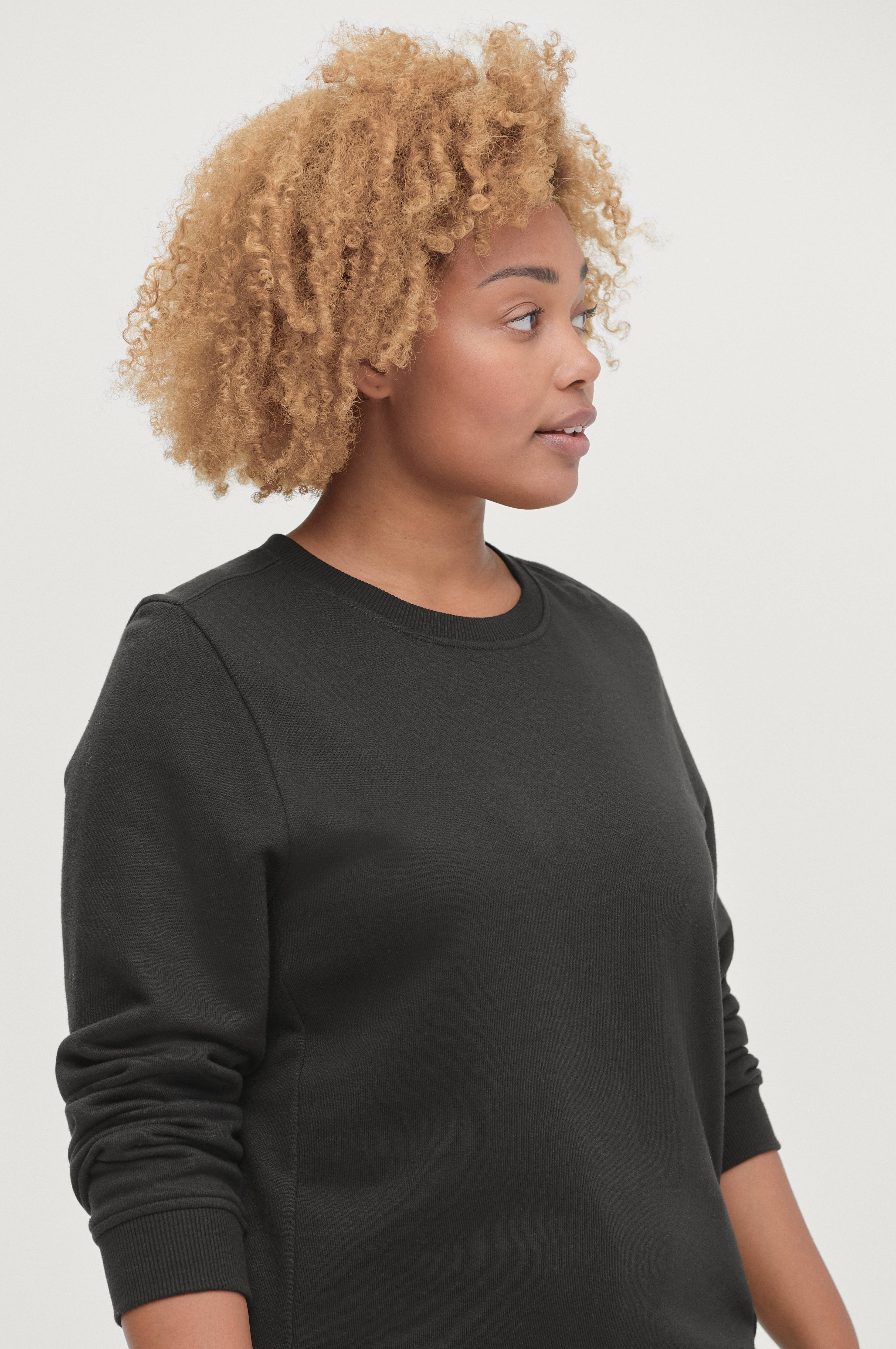 Sweatshirt Anike i lang, let A-formet model i skøn sweatkvalitet. Fremskudte sidesøm med slids forneden samt ribkant i ærmekant og halsudskæring. Længde bagpå ca. 86 cm i str. 46/48.