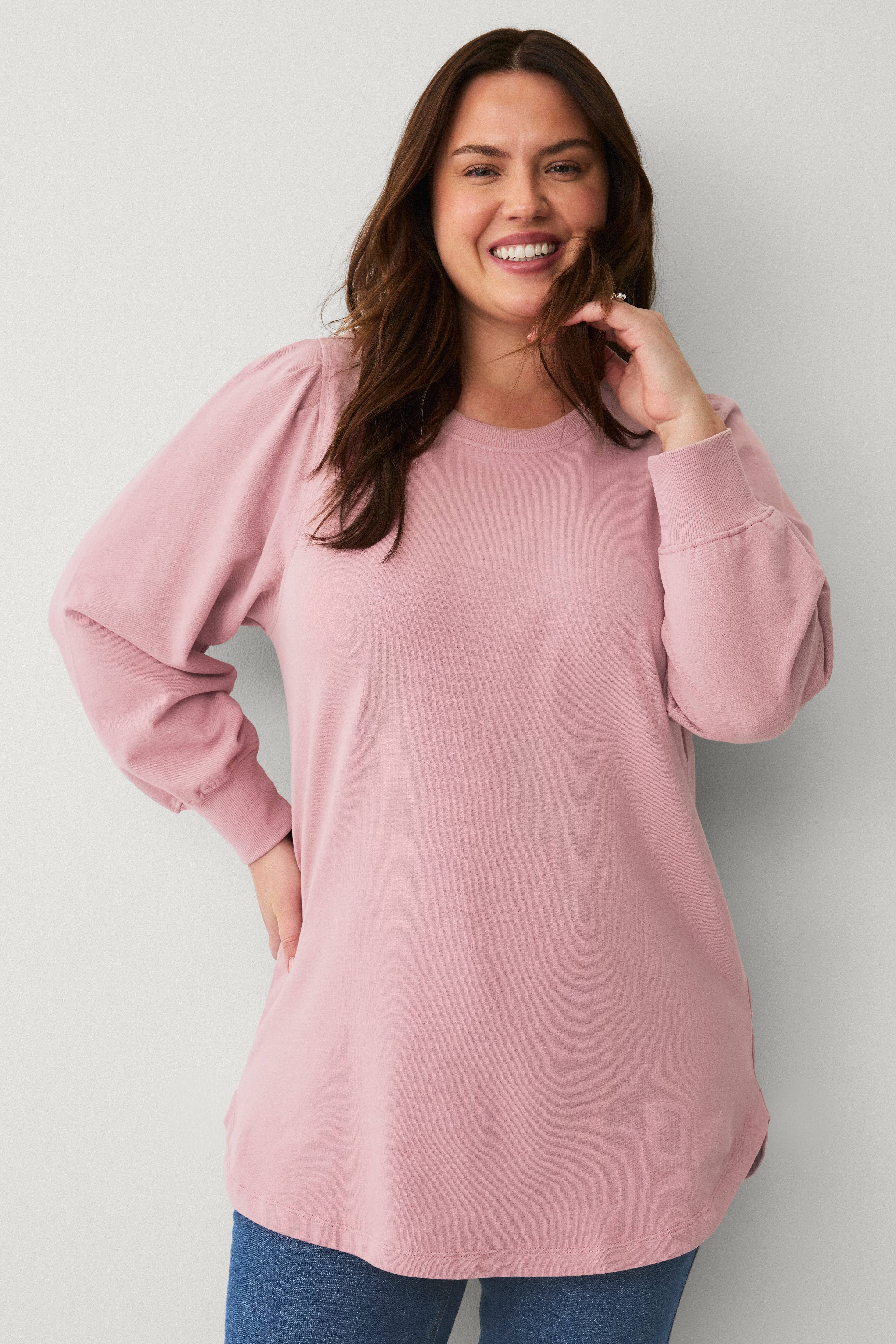 • Lang model med afrundet søm• Rund hals med ribkant• Langt ærme• Ribmanchet ved manchetterne og nederst• Længde: 86 cm i størrelse 42/44