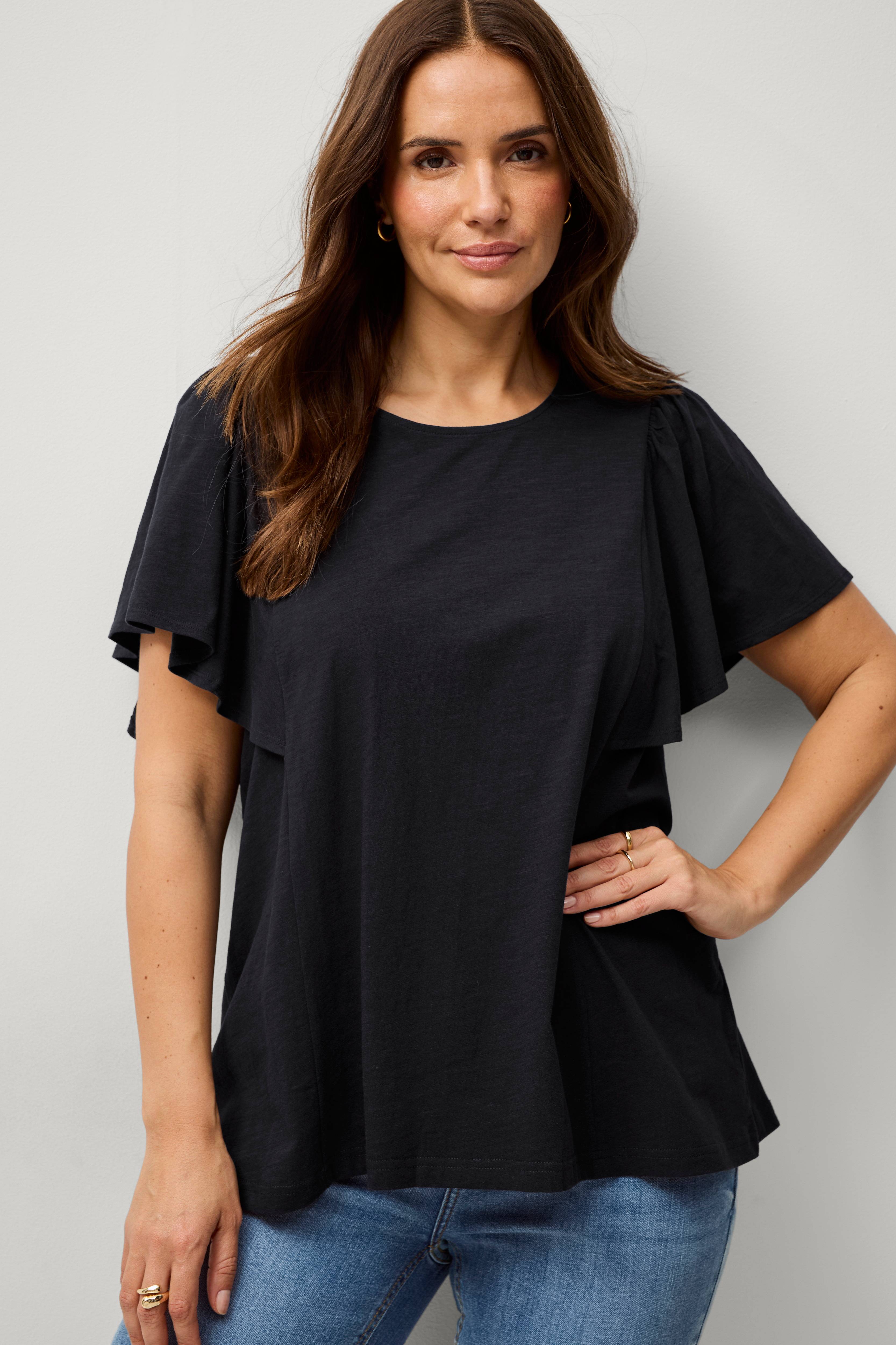 • Korte, brede flagrende ærmer• Rund hals• Fremstillet af bomuldsjersey• Længde: 72 cm i størrelse 46/48