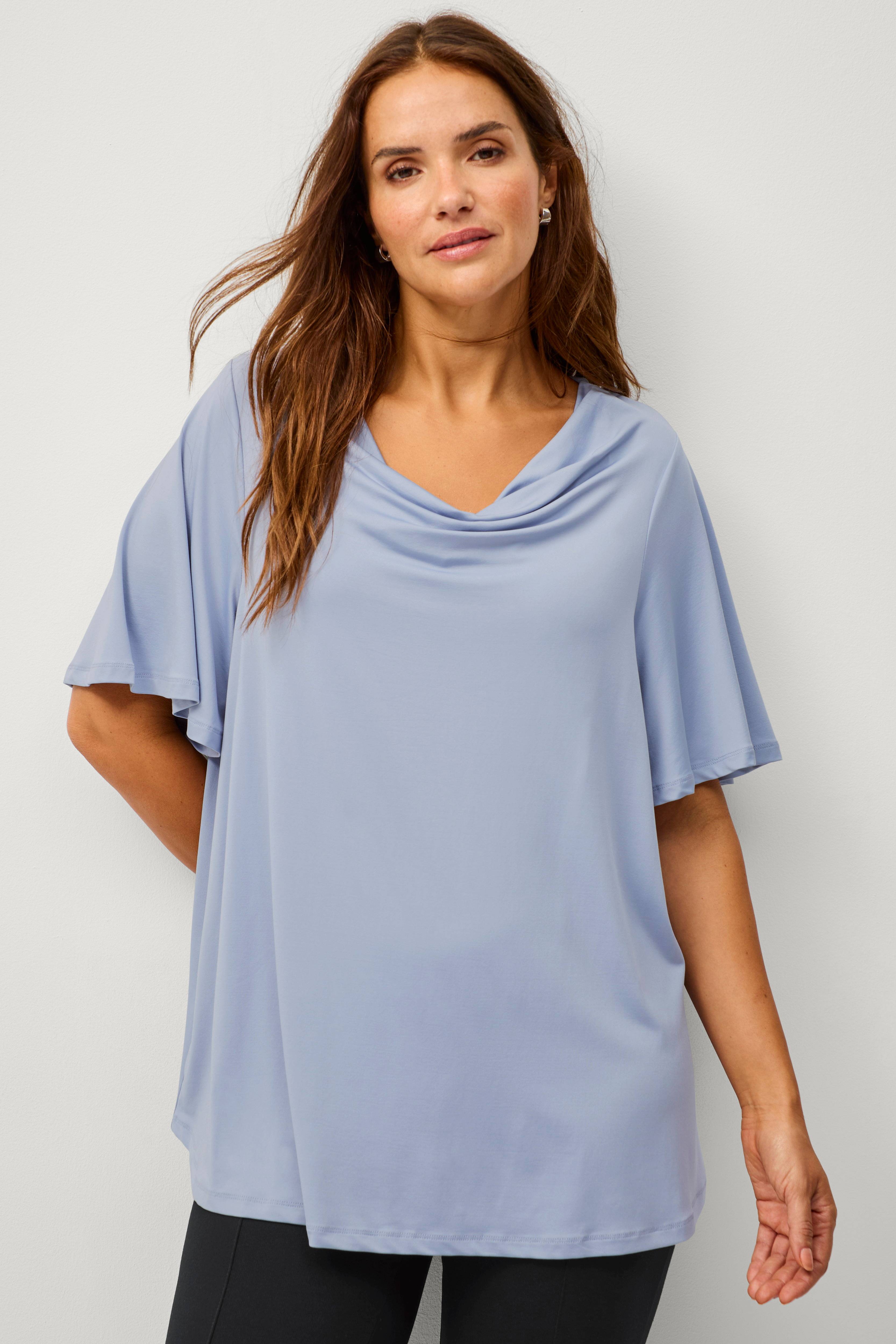 • Lige model i jersey• Bred, draperet halsudskæring• Kort, bredt ærme• Længde: 74 cm i størrelse 46/48