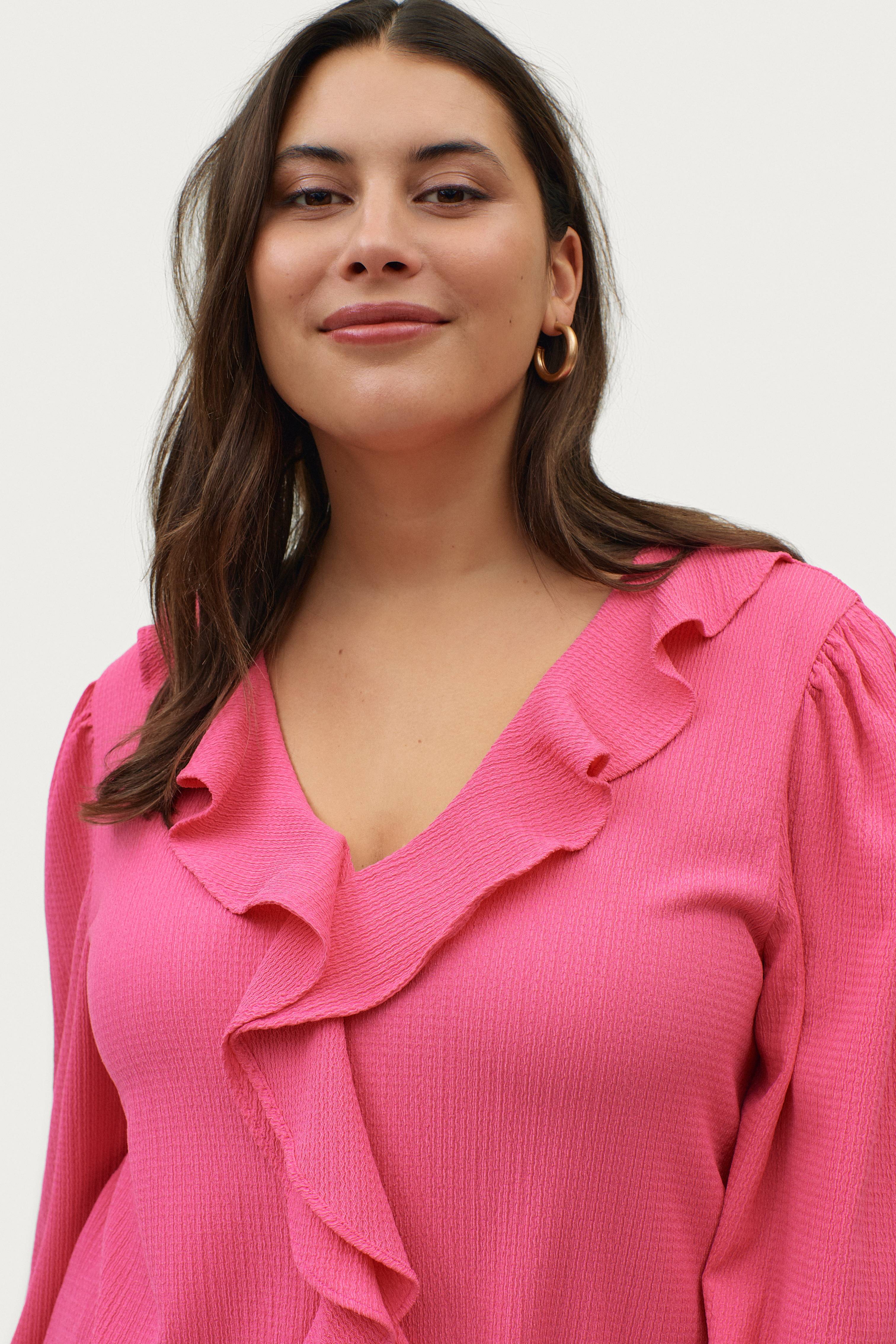 Blusen er en sjov kombination af højtidelighed med specielle flæser og på den anden side med stoffer, der understøtter hverdagsbrug: blusen kan bæres både hverdag og til fest. De…
