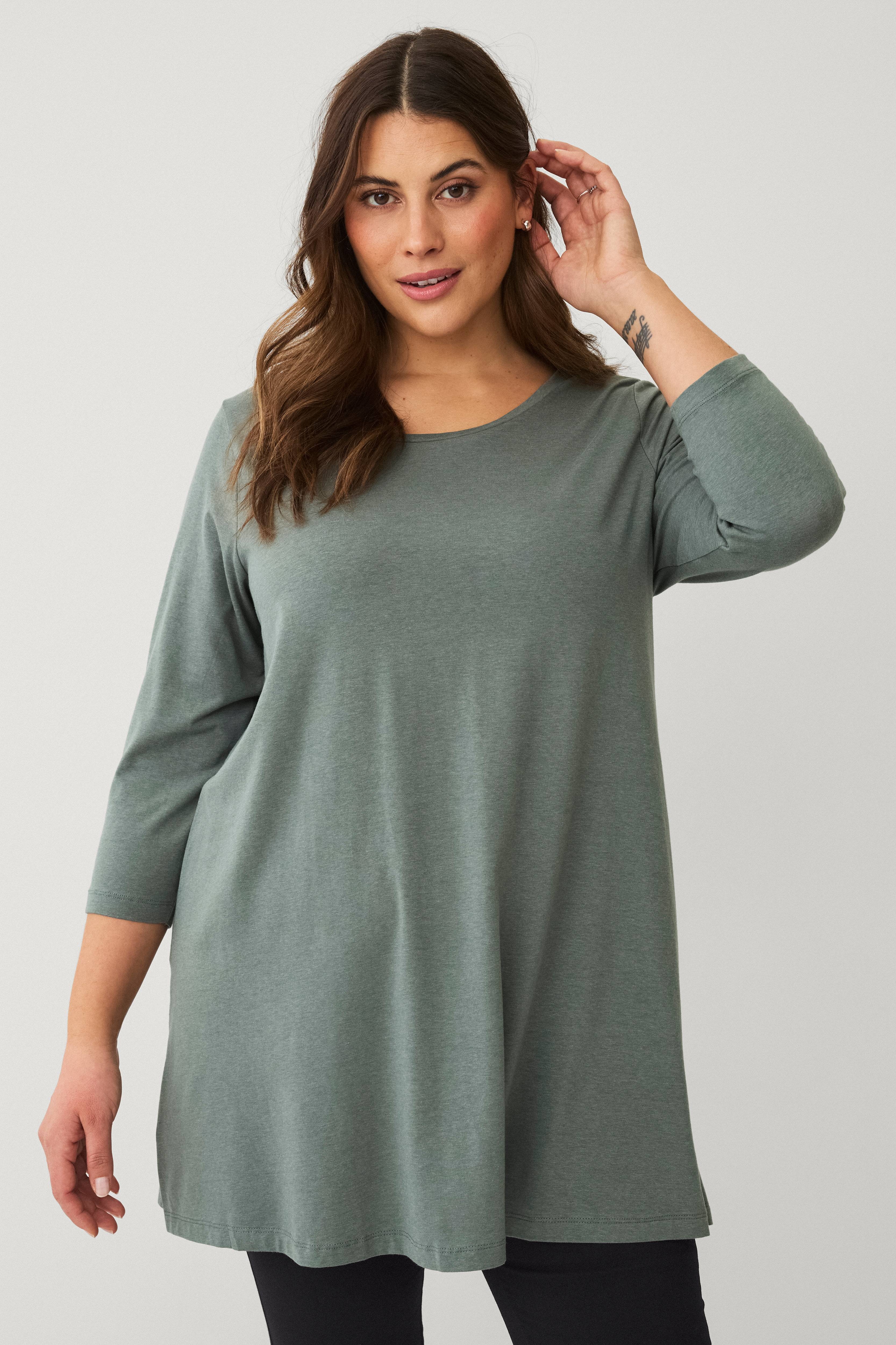 • Store størrelser• Model med svaj• Halsudskæring med lille ribkant• Lige, 3/4 langt ærme• Længde: 89 cm i størrelse L