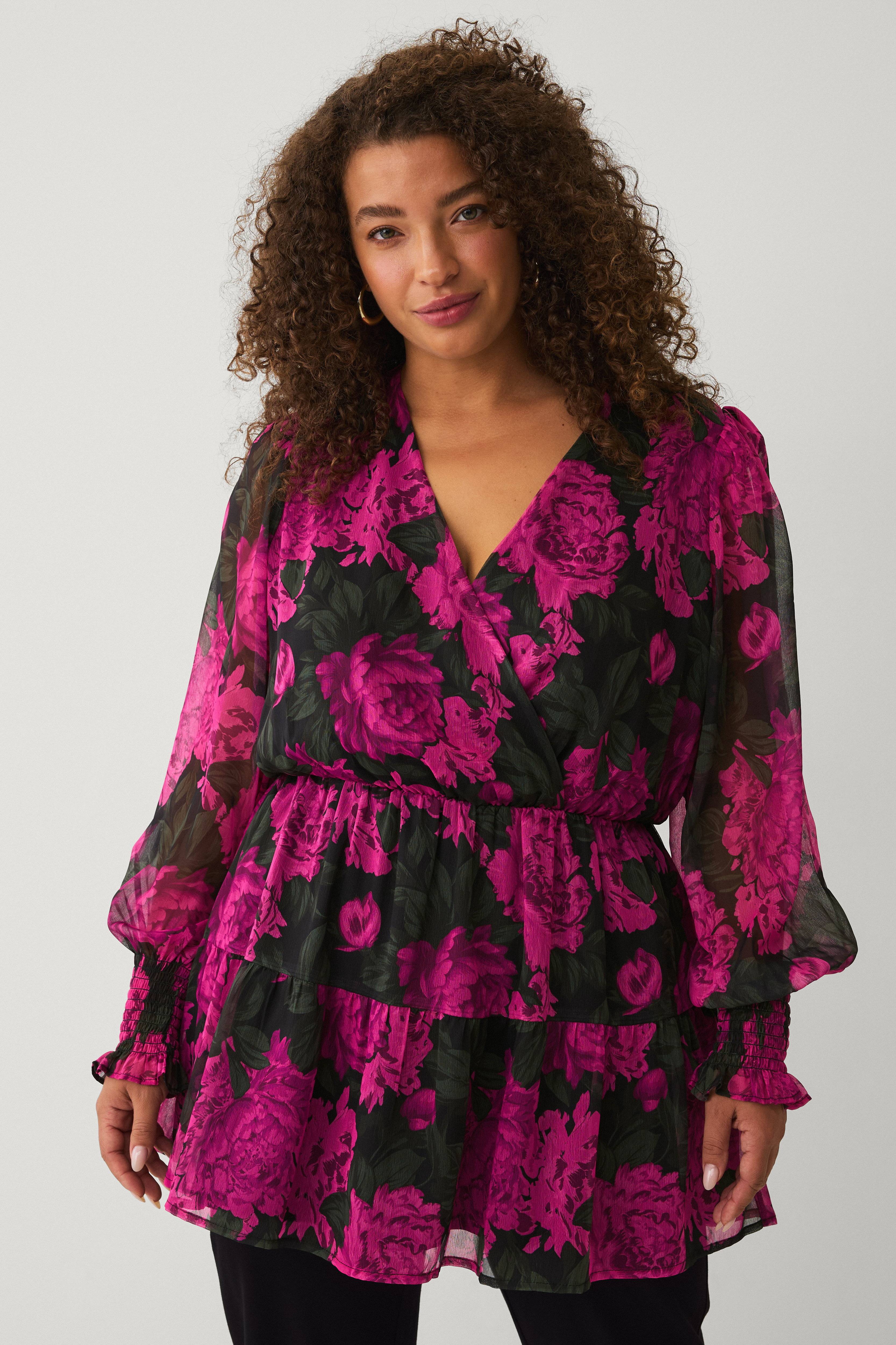 • Mønstret tunika i chiffon med for