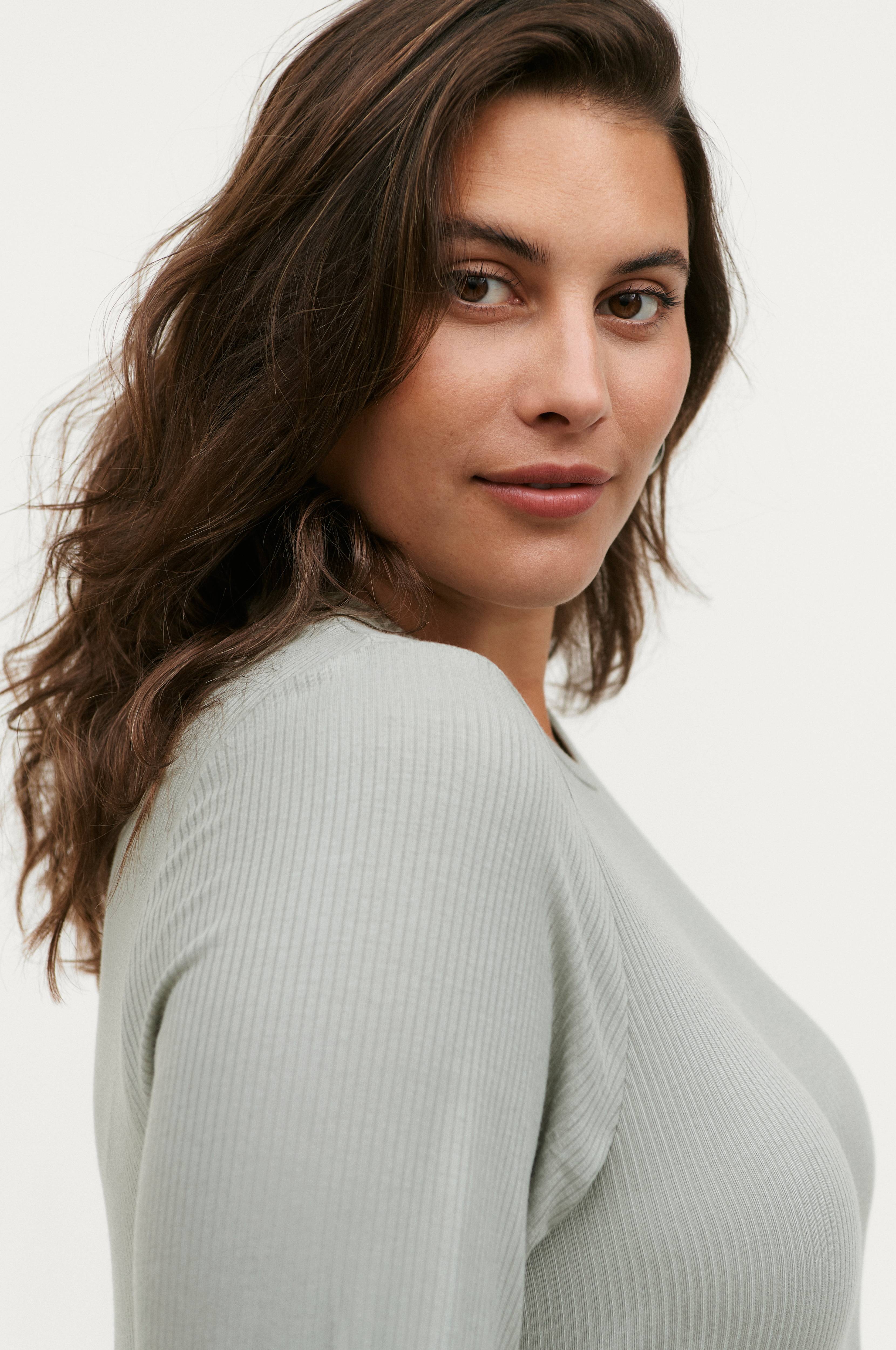 • Model med svaj• Rynket markeret talje• Rund hals• Ribstrikket jersey• Længde: 84 cm i størrelse 46/48