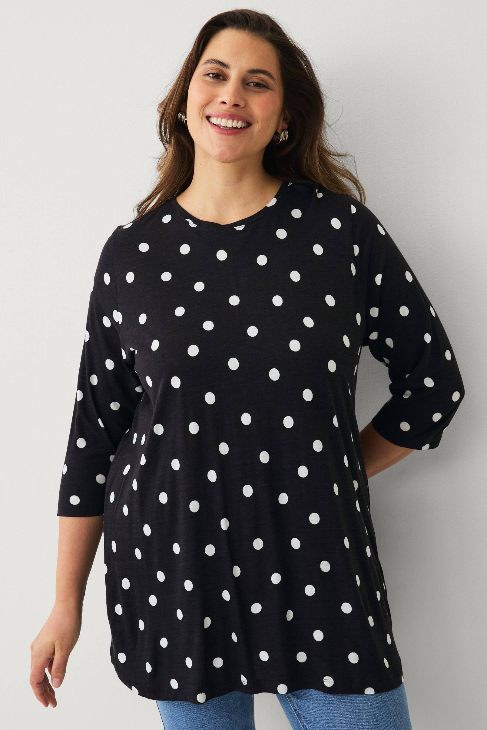 • Blød tunika i viskose• Rund halsudskæring• 3/4 lange ærmer• Normal pasform• Længde: 82 cm i størrelse XL