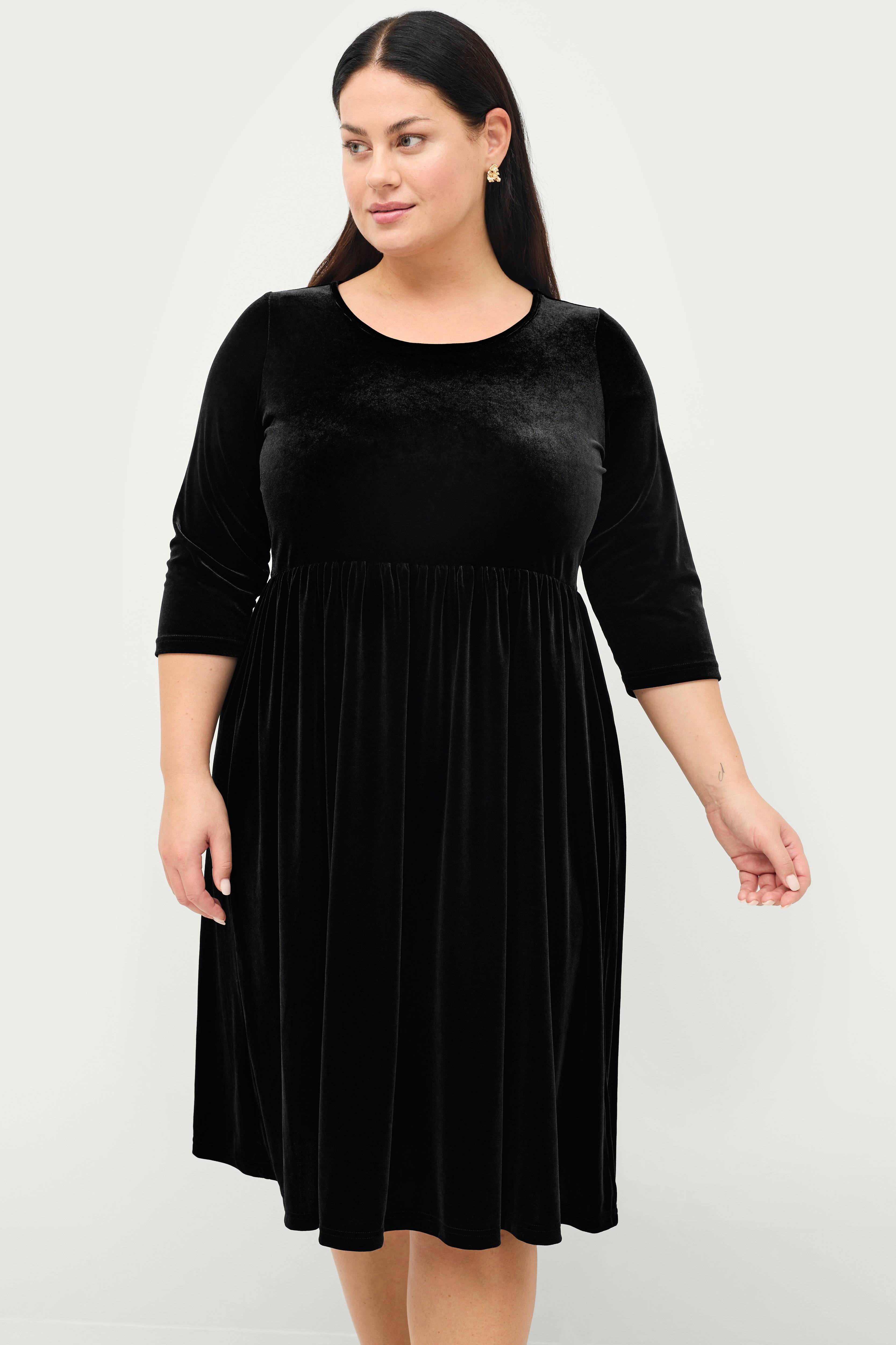 Kjolen føles behagelig, har en passende længde og er passende festlig til forskellige lejligheder. Kjolen har et smukt skinnende udseende. Det er en ret varm kjole. Den eneste ulem…