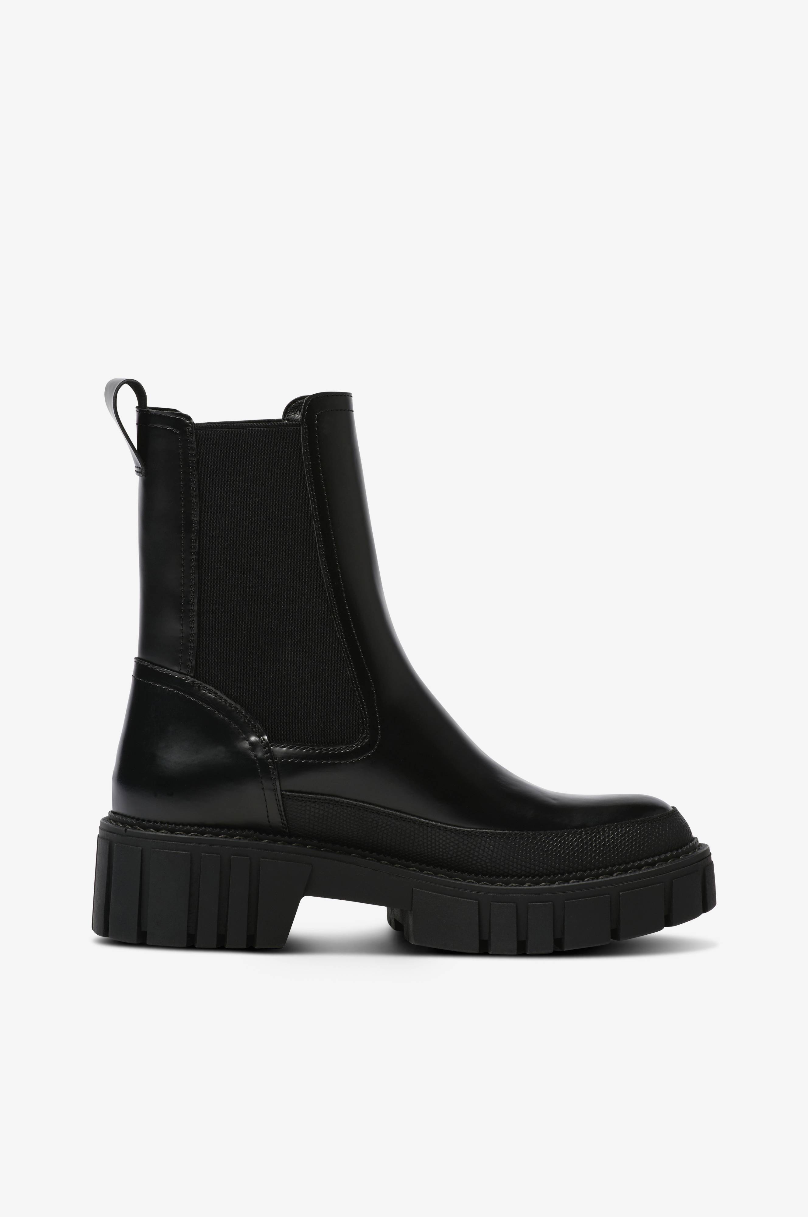 • Elastiske paneler på siderne • Afrundet tåform • Trækstrop bagpå • Grov, høj sål • Tekstilforing • Skafthøjde: 17,5 cm i str. 37 • Hælhøjde: 5 cm • Sålhøjde: 3 cm