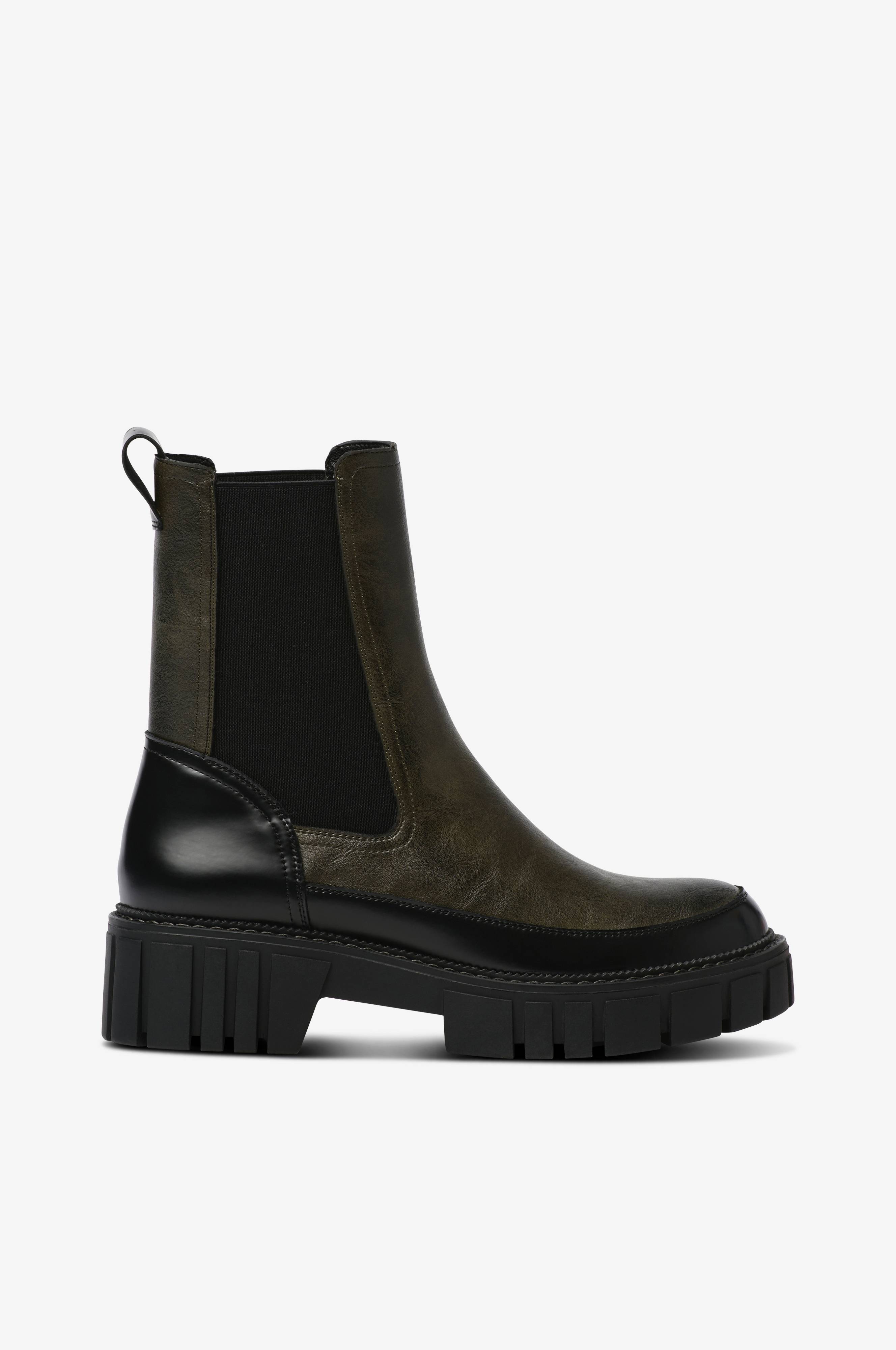 • Elastiske paneler på siderne • Afrundet tåform • Trækstrop bagpå • Grov, høj sål • Tekstilforing • Skafthøjde: 17,5 cm i str. 37 • Hælhøjde: 5 cm • Sålhøjde: 3 cm