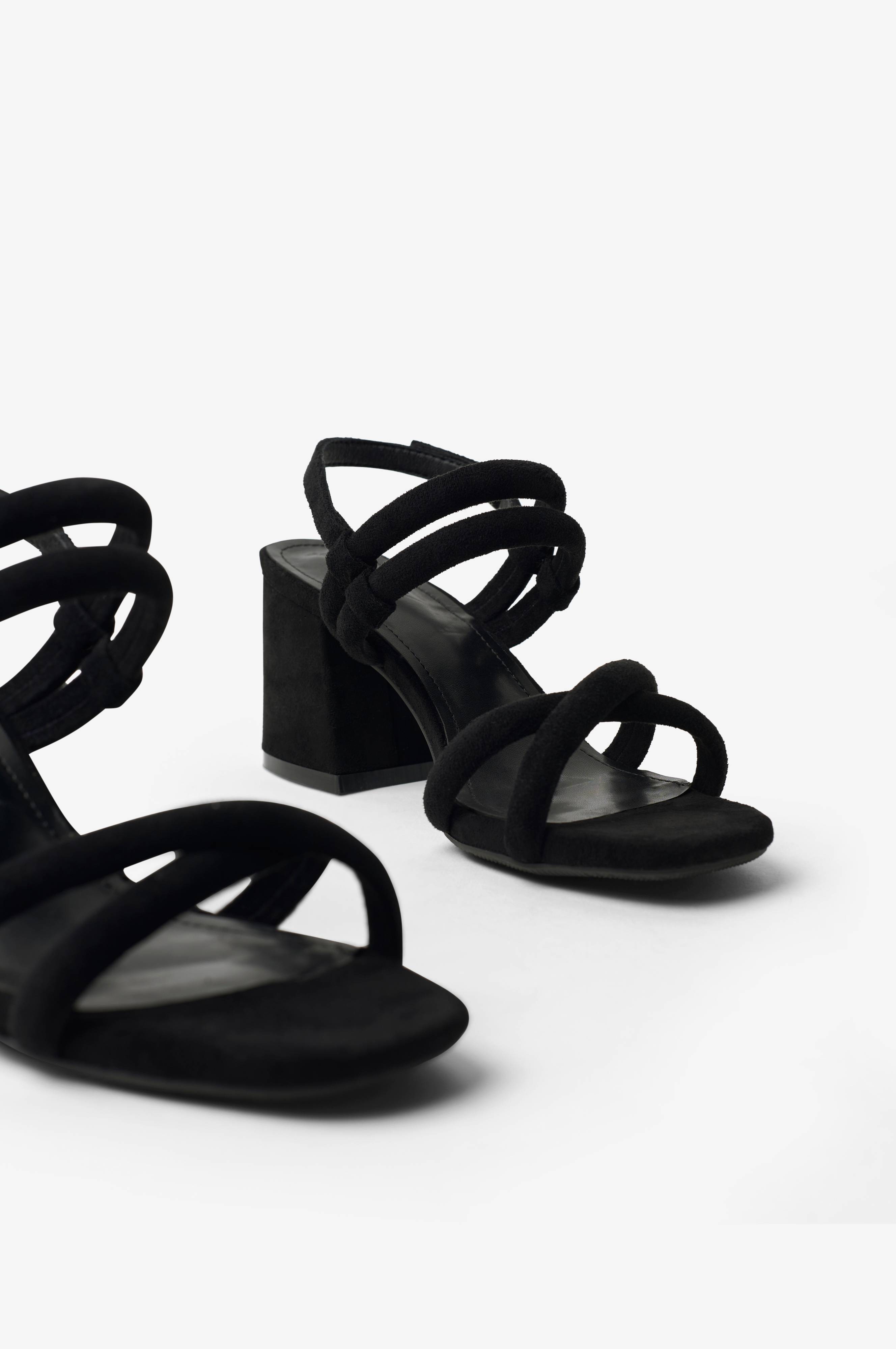 • Krydsende remme ved tæerne• To remme over foden• Justérbar rem ved anklen• Blokhæl• Hælhøjde: 7 cm